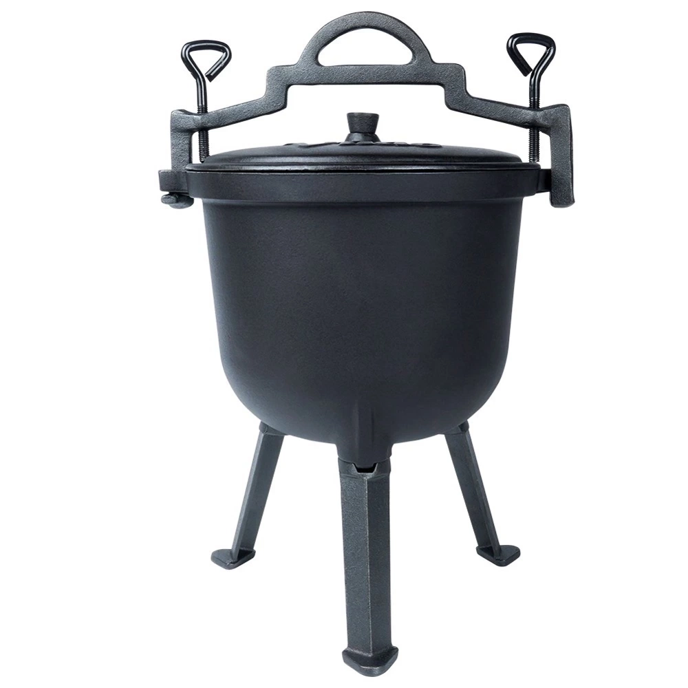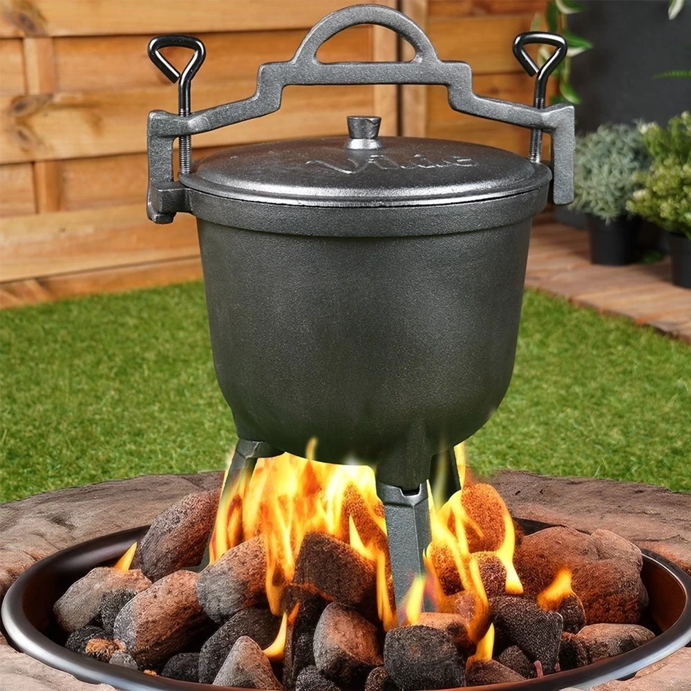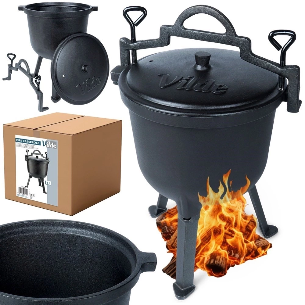 - Żeliwny kociołek na nóżkach z pokrywką o pojemności 8 l. Idealny do przygotowania różnego rodzaju dań. Nadaje się do postawienia na ognisku lub palenisku.
