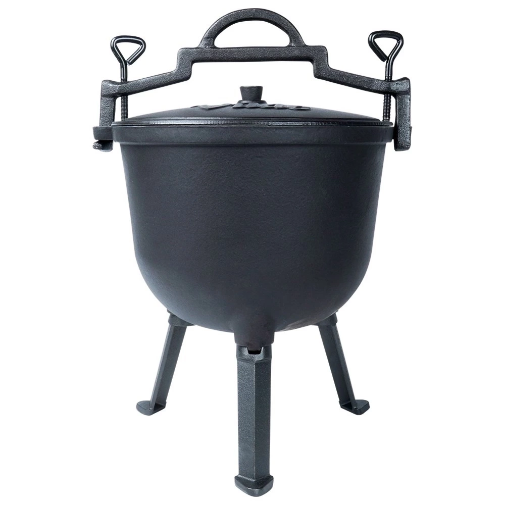 - PRAKTYCZNY - Kociołek żeliwny na nóżkach z pokrywą oraz uchwytem, wnętrze emaliowane. Kociołek o średnicy 28,5 cm i pojemności 10 l. Wymiary zewnętrzne kociołka z pokrywką i nóżkami: 35,5 x 31,5 x 49 cm, wysokość kociołka bez pokrywy wynosi 36 cm. Idealne sprawdzi się do przygotowywania dań w ogrodzie, na kempingu, przy grillu czy też ognisku.
