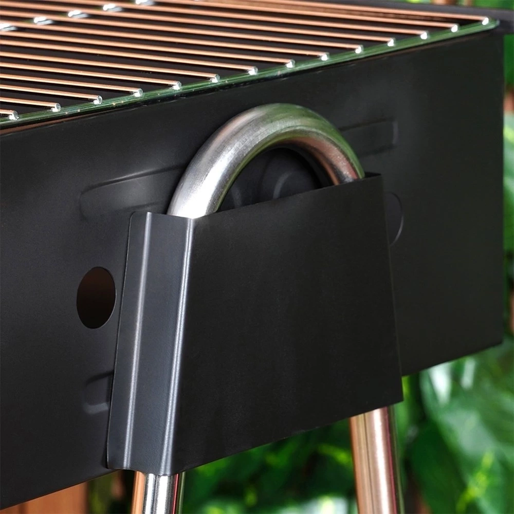 Grill węglowy w kompaktowych rozmiarach. Jego wyjątkowa konstrukcja zapewnia łatwość użytkowania zarówno w domowym ogrodzie, jak i podczas wyjazdów na łono natury. Dzięki jego innowacyjnym funkcjom, możemy przygotować grillowane posiłki w dowolnym miejscu na świeżym powietrzu. Użyte materiały są odporne na korozję i wysokie temperatury, co gwarantuje długotrwałe użytkowanie. Oryginalny produkt holenderskiej marki BBQ. Wyprodukowano zgodnie z europejskimi standardami.