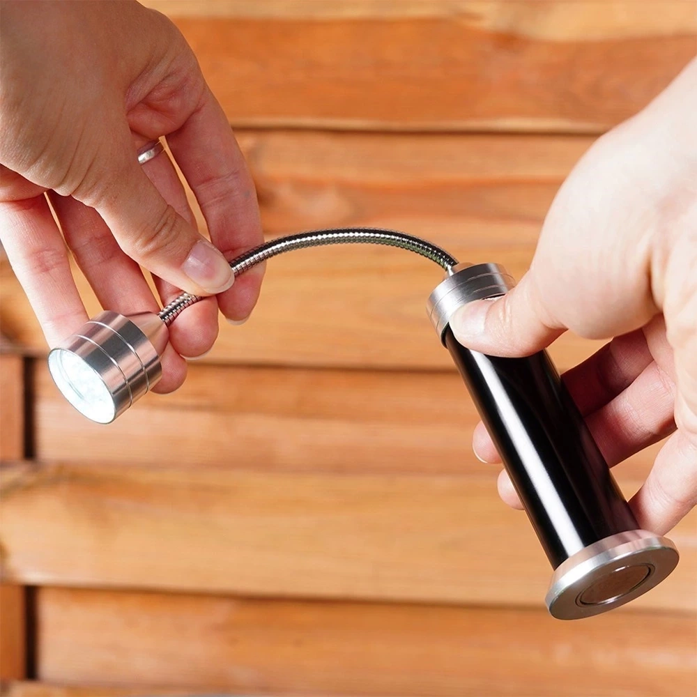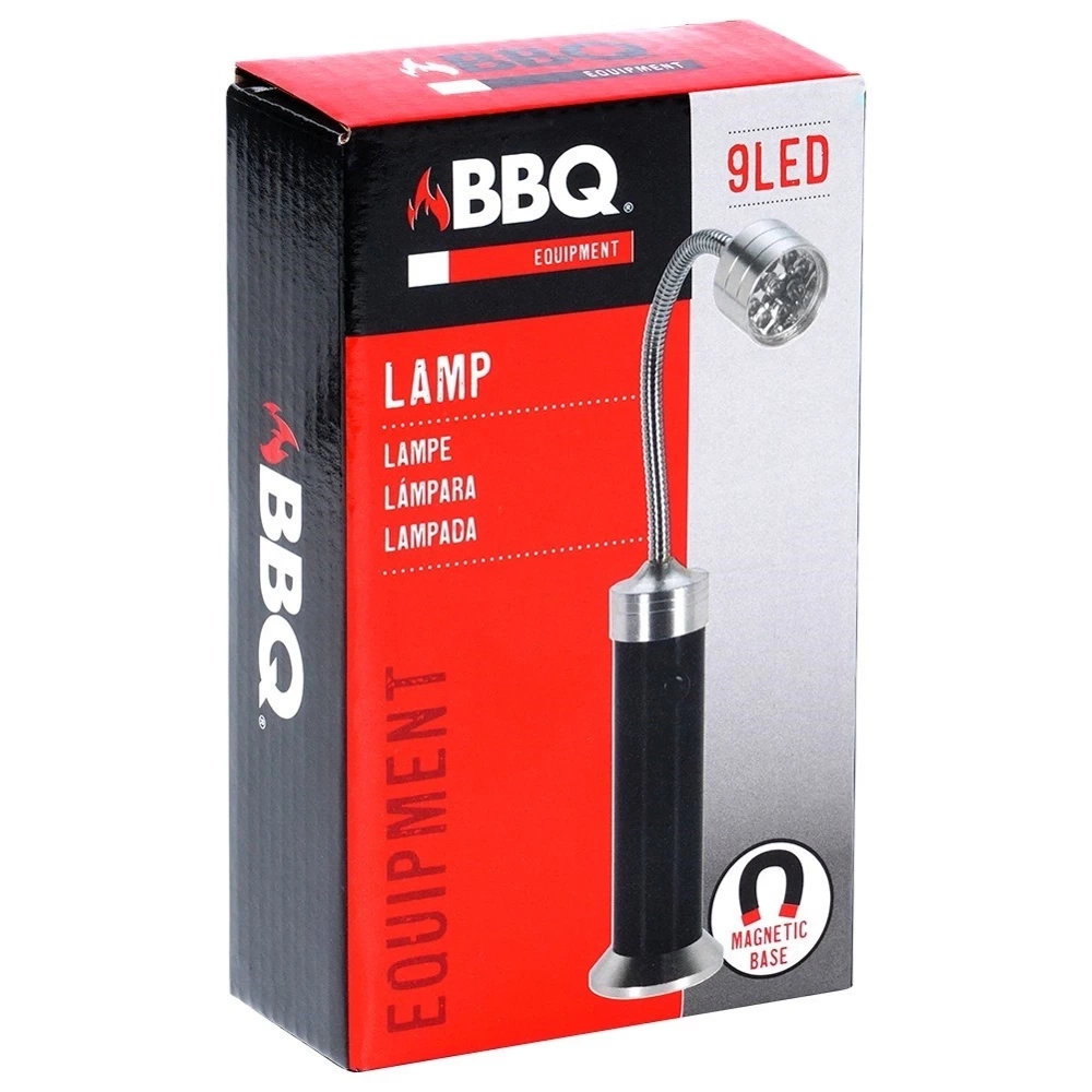 - Magnetyczna lampka do grilla z 9 lampkami LED. Posiada regulowany kąt świecenia oraz wyposażona jest w magnes, za pomocą którego stabilnie umieścimy ją na grillu.