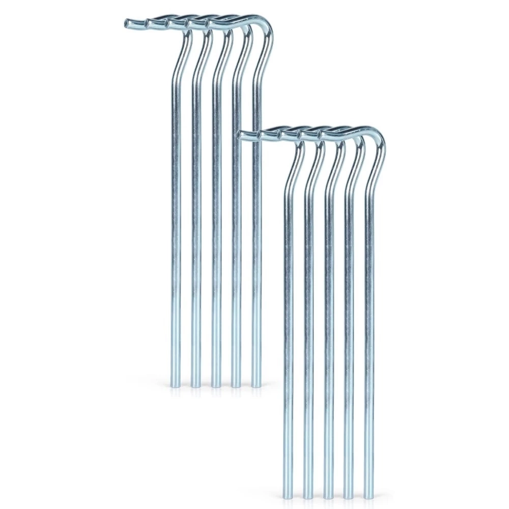 - PRZYDATNE - Zestaw 10 śledzi do namiotu. Śledzie mają długość 17 cm, średnicę 0,5 cm i ergonomiczny kształt, który zapewni wygodne wbijanie do podłoża.