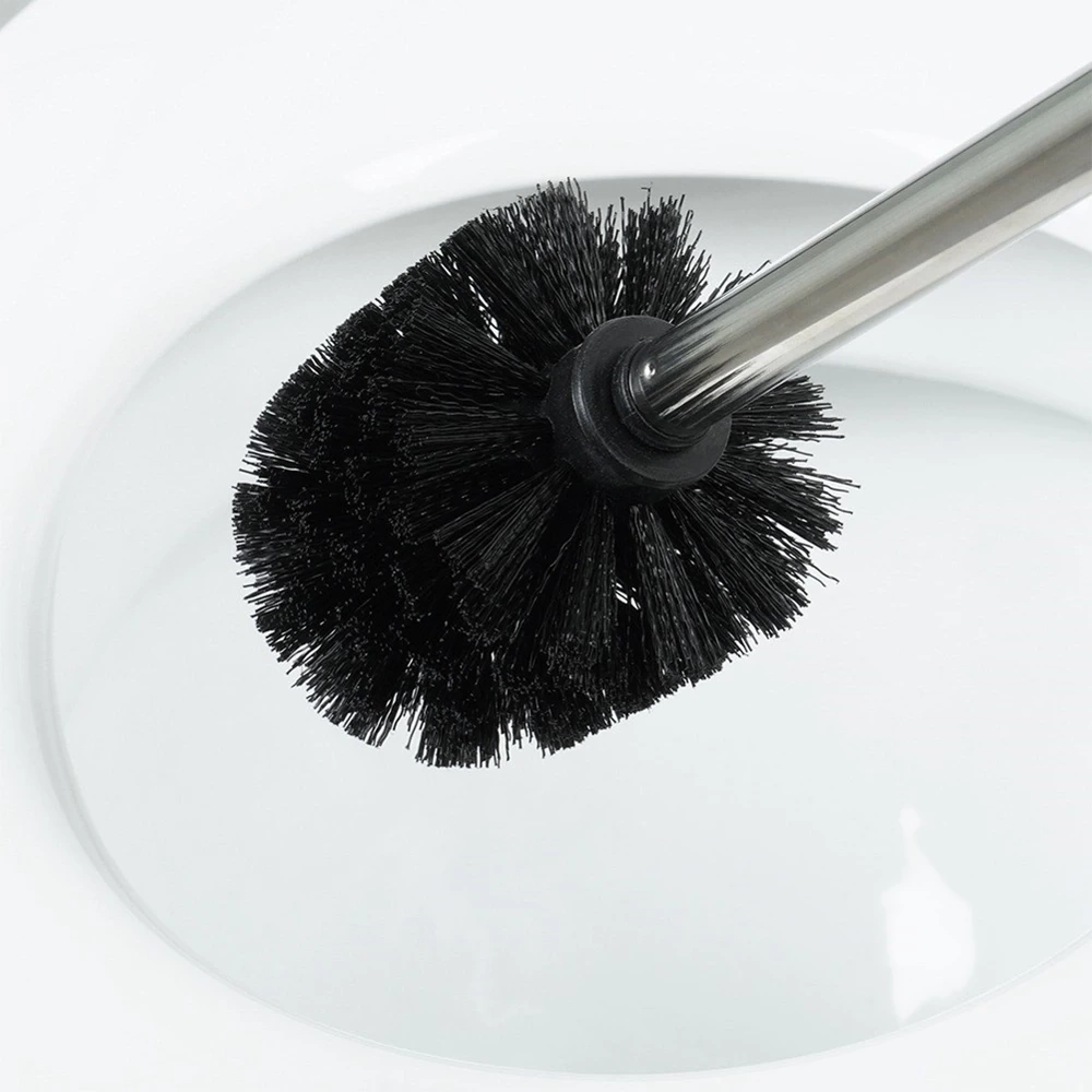 - Zapasowa szczotka do czyszczenia toalety w kolorze czarnym a uchwyt w kolorze srebrnym. Uniwersalna oraz wygodna w użytkowaniu. Wykonana ze stali i wytrzymałego tworzywa.