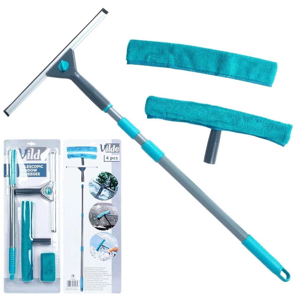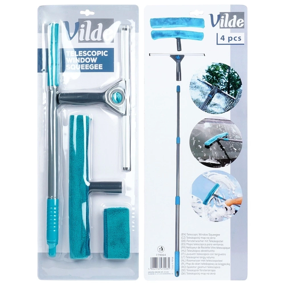 Myjka teleskopowa wraz ze ściągaczką i wkładem z mikrofibry. Dzięki teleskopowej rączce możemy dotrzeć mopem w trudno dostępne miejsca bez konieczności używania drabiny, podstawki czy krzesła. Myjka zapewni wygodne oraz bezpieczne mycie okien i luster. Ściągaczka pozwoli na odpowiednie zebranie wody. Ściereczki zawarte w zestawie są bardzo chłonne. Zestaw przydatny w każdym domu i biurze. Oryginalny produkt marki Vilde. Wyprodukowano zgodnie z europejskimi standardami.