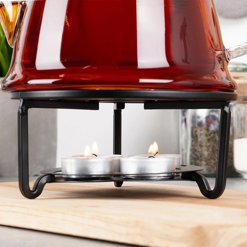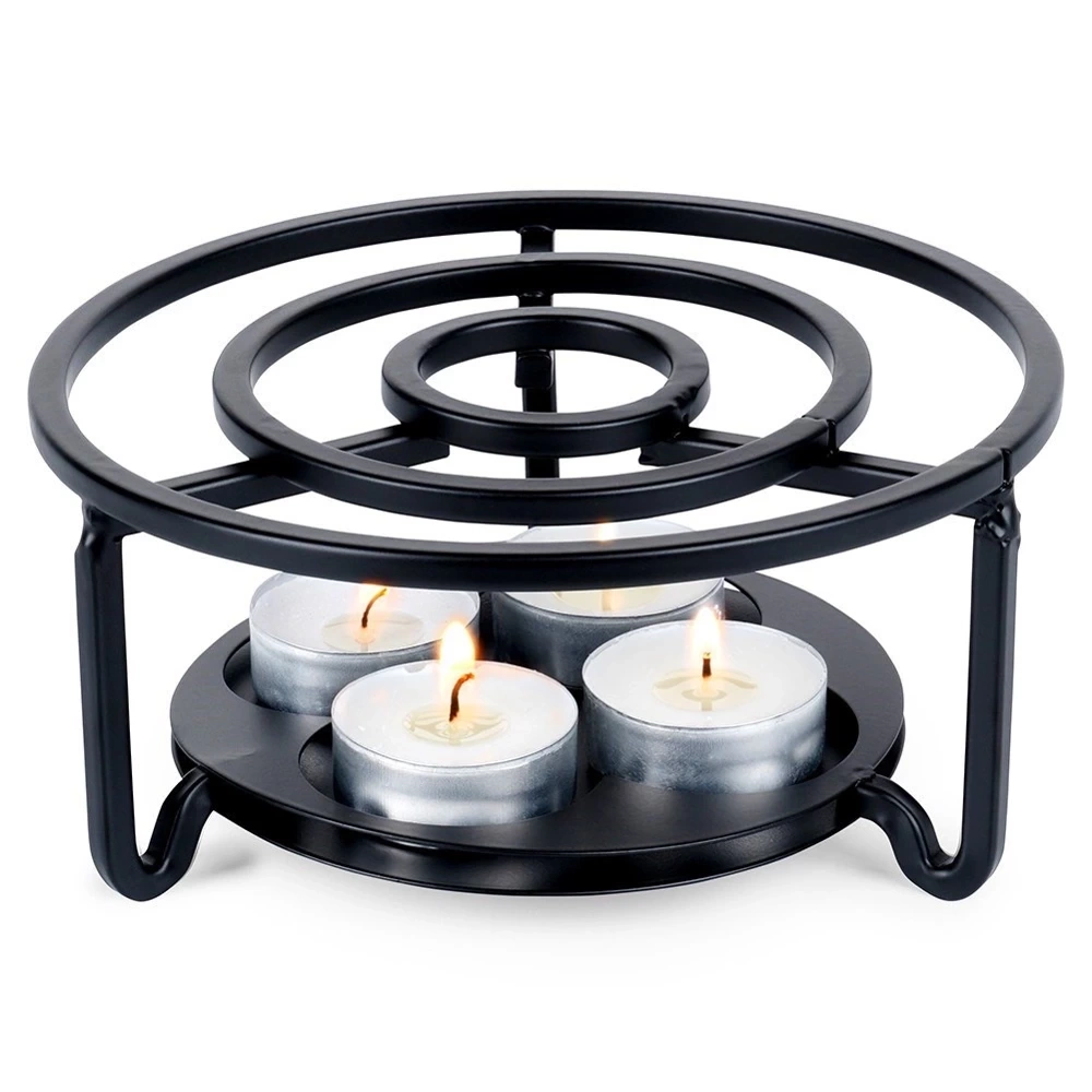 - Podgrzewacz wykonany z metalu na świeczki typu tealight. Sprawdzi się pod czajniczki, dzbanki, garnki i inne naczynia. Odpowiedni do przygotowania fondue.