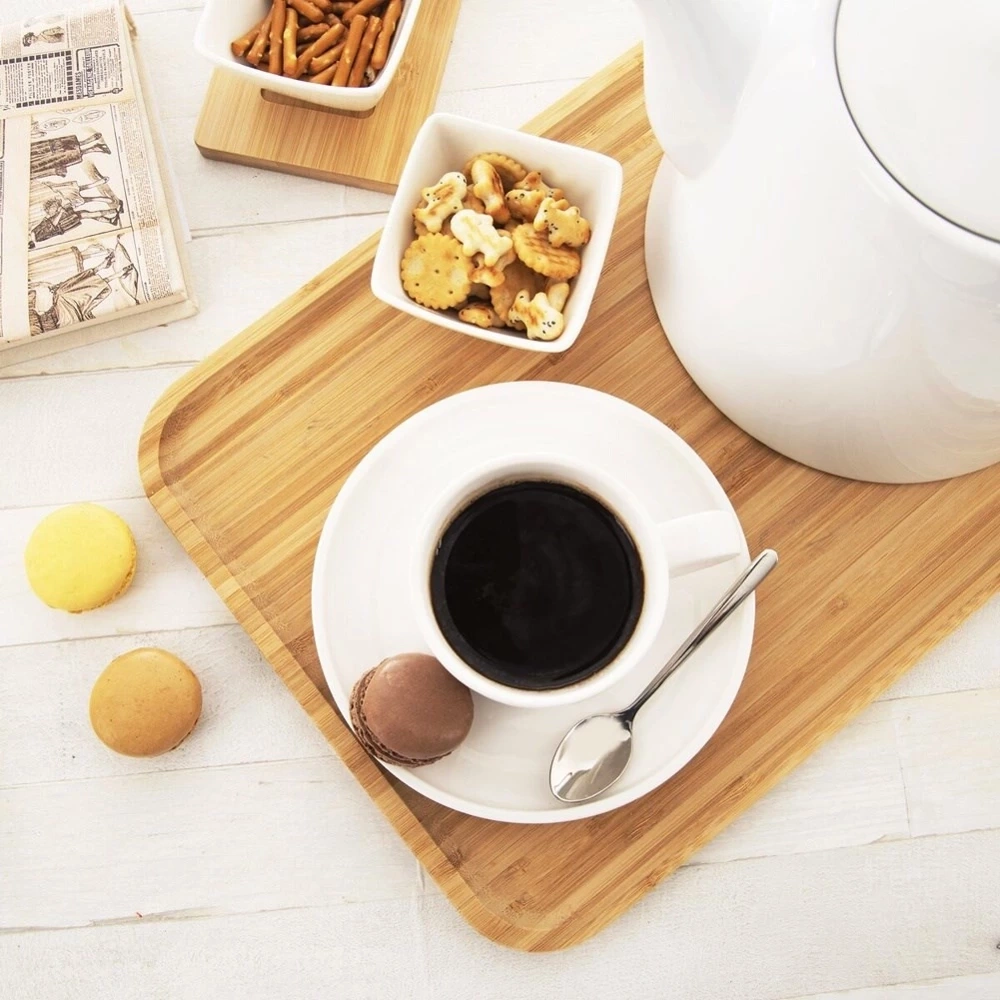 - Taca do serwowania w prostokątnym kształcie - Taca do serwowania potraw i przekąsek w prostokątnym kształcie. Dzięki niej z łatwością przeniesiesz również kawę, herbatę, domowe ciasto czy drobny deser. Taca jest niezwykle funkcjonalna i ma wymiary całkowite: 44 x 25 x 1,5 cm.