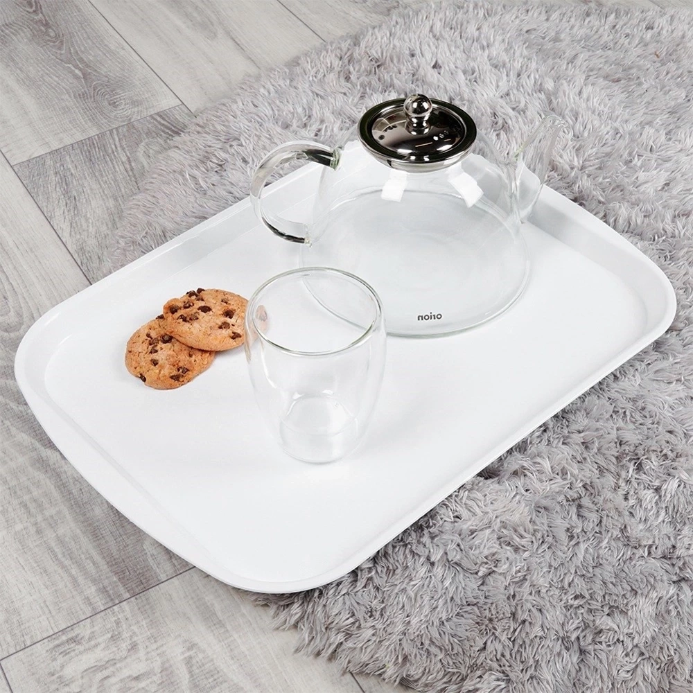 - Taca do serwowania w prostokątnym kształcie - Taca do serwowania potraw i przekąsek w prostokątnym kształcie. Dzięki niej z łatwością przeniesiesz również kawę, herbatę, domowe ciasto czy drobny deser. Taca jest niezwykle funkcjonalna i ma wymiary całkowite: 43,5 x 31,5 x 2 cm.