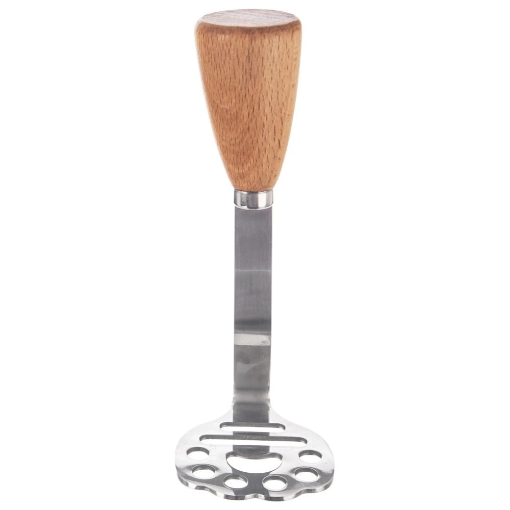 - Tłuczek kuchenny do ubijania mniejszych ilości ziemniaków i przygotowywania puree z owoców. Wykonany z wysokiej jakości stali nierdzewnej oraz drewna.