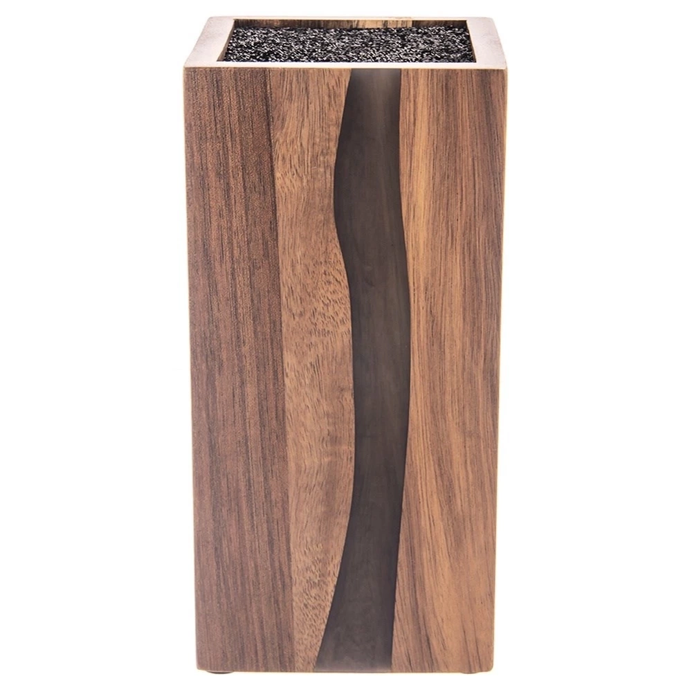 - Stojak na noże wykonany z drewna akacjowego z włosiem z tworzywa sztucznego, zapobiega porysowaniu noży i innych narzędzi kuchennych - nożyczek, obieraczek, itd.