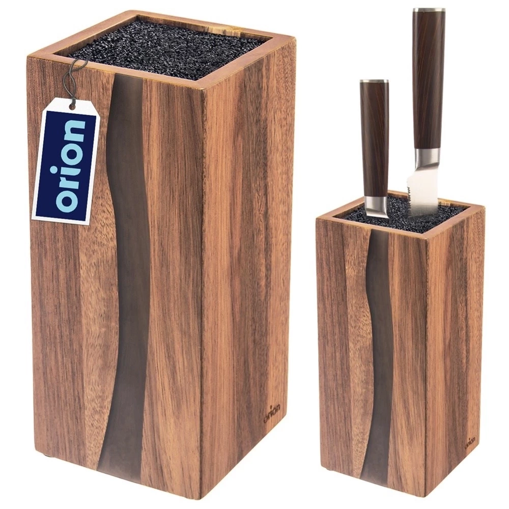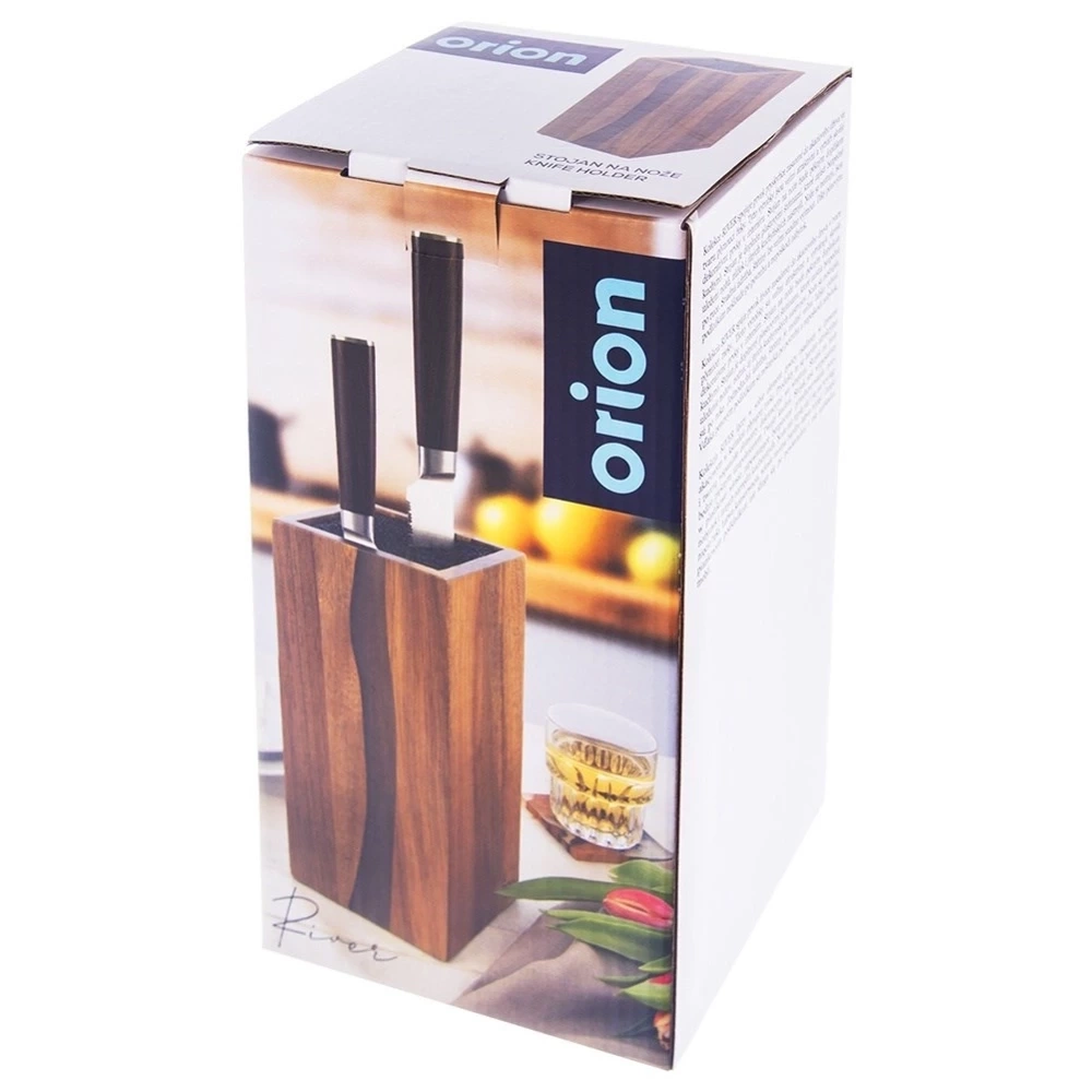 Stojak na noże i przybory kuchenne, wykonany z solidnych materiałów. Niezwykle efektowny będzie ozdobą każdej kuchni, jednocześnie umożliwiając odpowiednie przechowywanie noży. Posiada nowoczesny design, dzięki czemu będzie pasował do kuchni w stylu nowoczesnym, ale również w stylu klasycznym. Oryginalny produkt czeskiej marki Orion. Wyprodukowano zgodnie z europejskimi standardami.