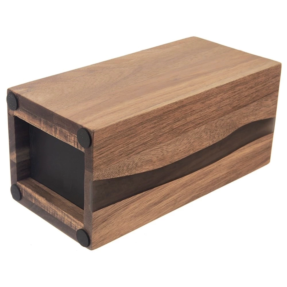 - Wykonany z drewna akacjowego - Wykonany z najwyższej jakości drewna akacjowego z elementami żywicy, która jest osadzona w drewnie, a swoim kształtem przypomina rzekę. Wypełnienie stojaka wykonane jest z wytrzymałego tworzywa w czarnym kolorze. Drewno akacjowe, jest materiałem ekologicznym i bezpiecznym dla zdrowia.