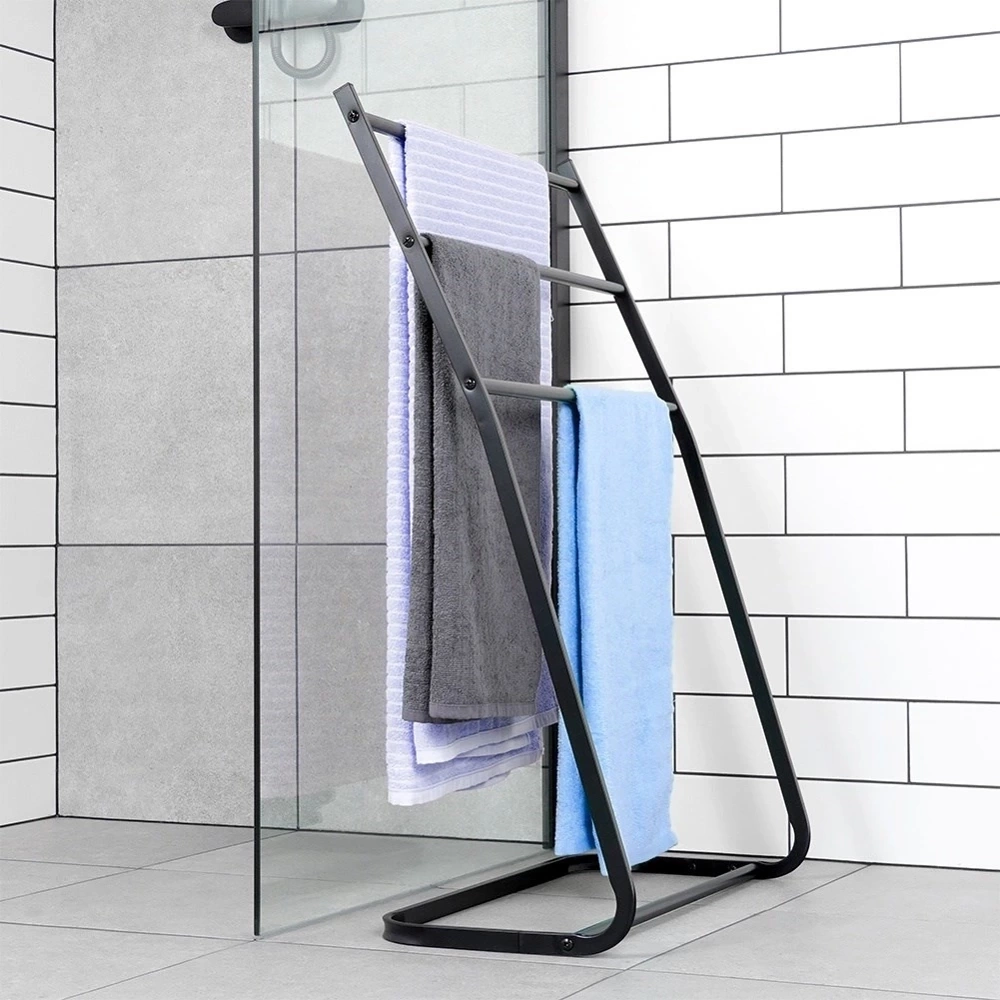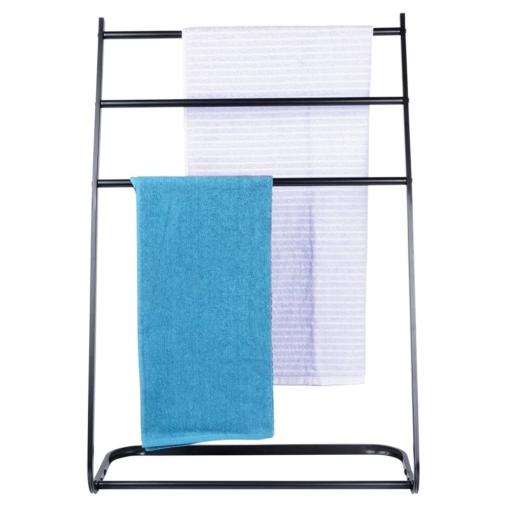 - Trzy poprzeczki do suszenia - Wieszak wyposażony jest w trzy stabilne poprzeczki, które umożliwią przechowywanie ręczników na różnych poziomach.