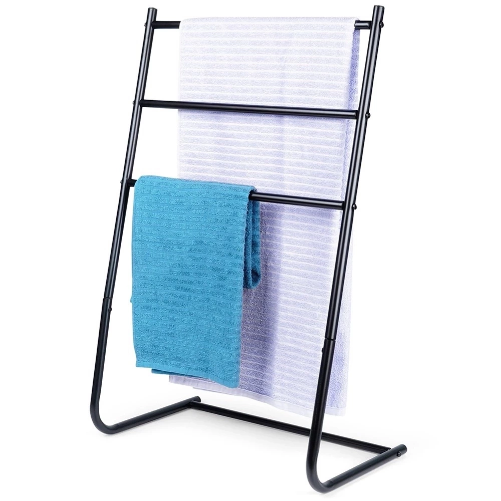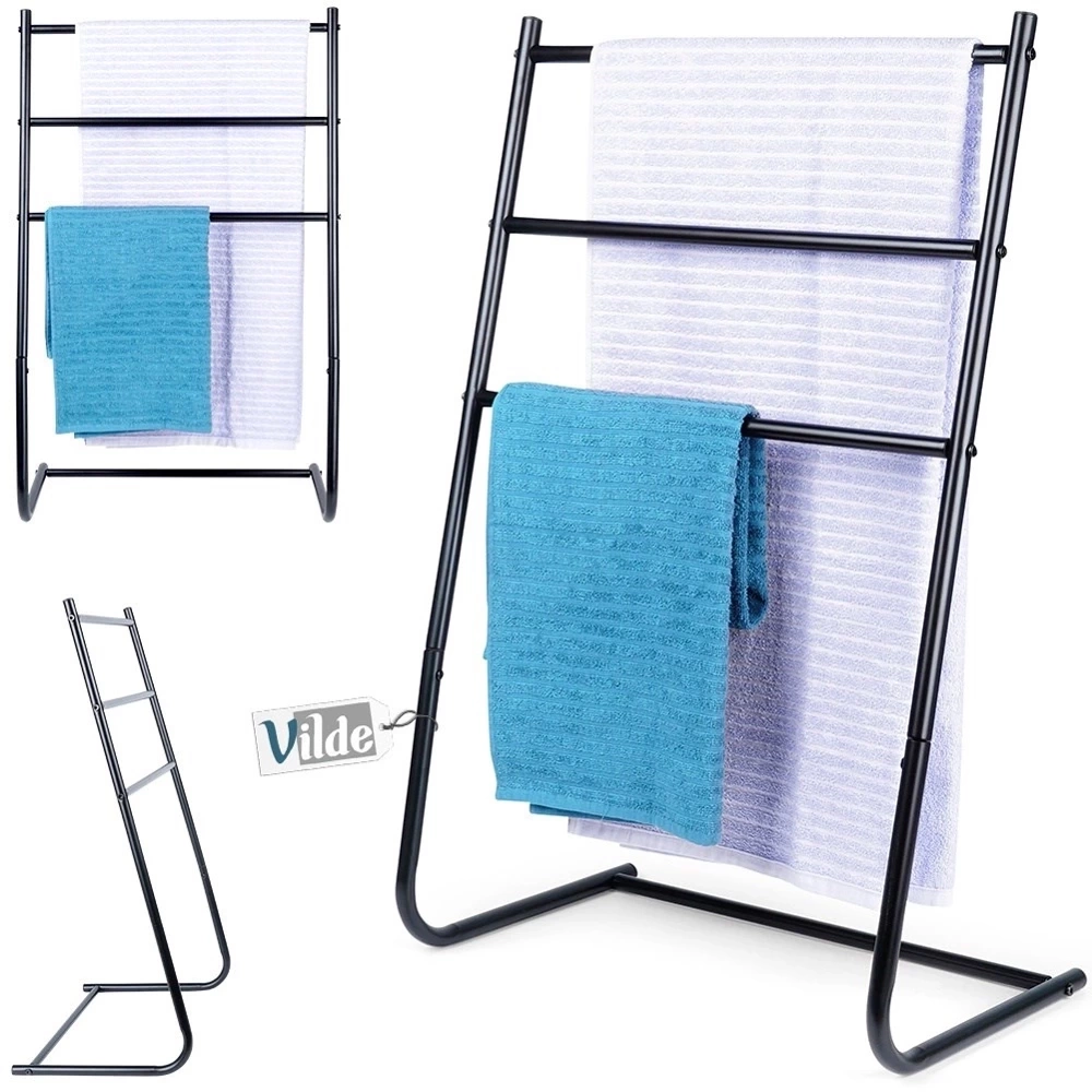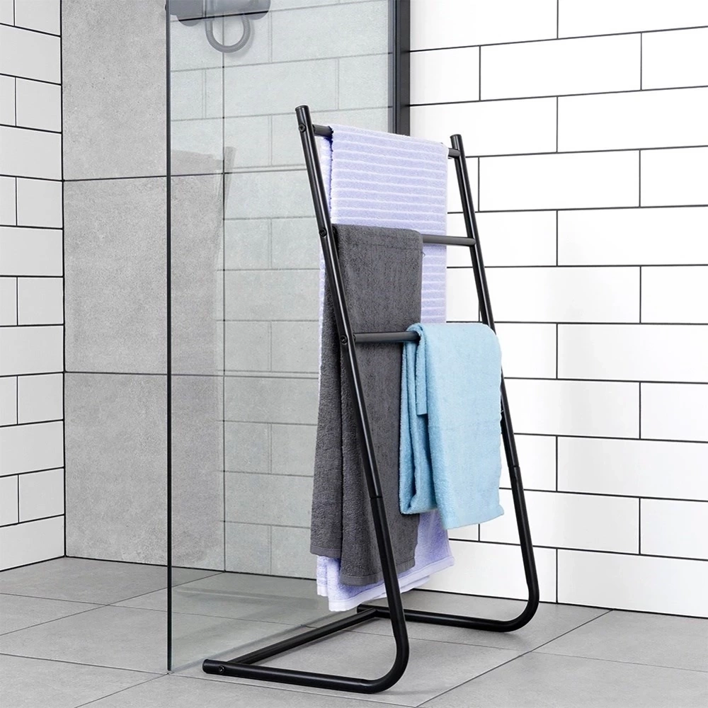 - Trzy poprzeczki do suszenia - Wieszak wyposażony jest w trzy stabilne poprzeczki, które umożliwią przechowywanie ręczników na różnych poziomach.
