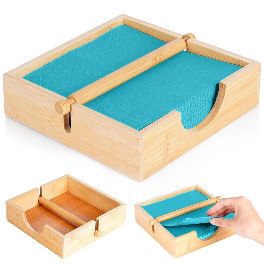 Serwetnik z dociskiem wykonany z solidnych materiałów. Odpowiedni do wygodnego przechowywania serwetek na stole. Dzięki niemu serwetki będą zawsze na swoim miejscu. Stojak na serwetki prezentuje się bardzo elegancko, w całości utrzymany w modnym, drewnianym stylu. Przydatny zarówno do użytku domowego, jak i w gastronomii. Wyprodukowano zgodnie z europejskimi standardami.