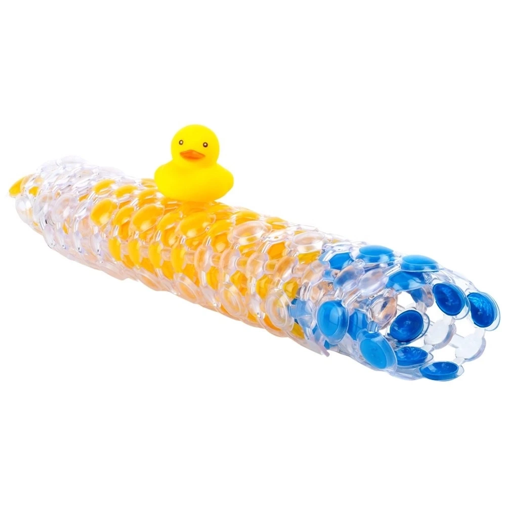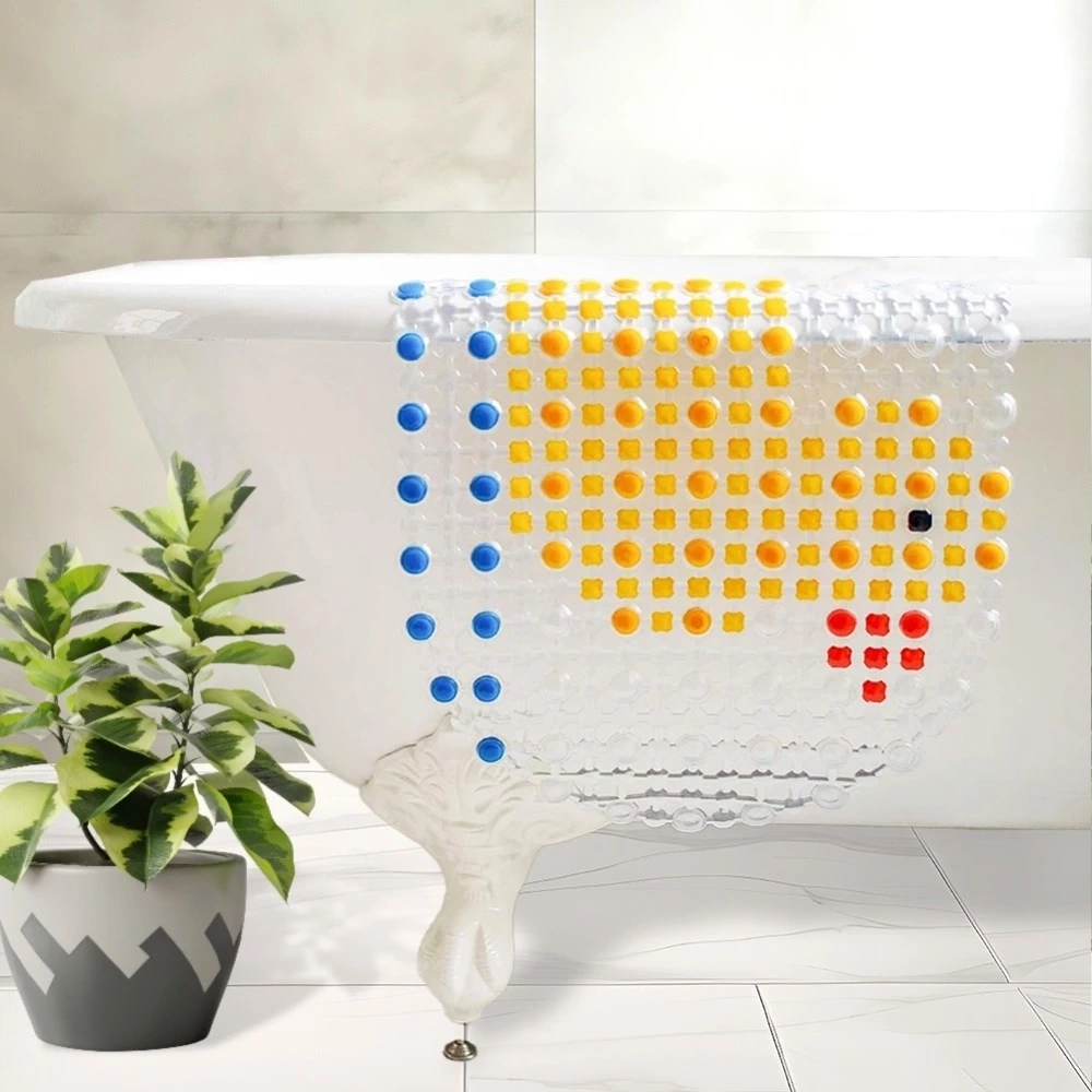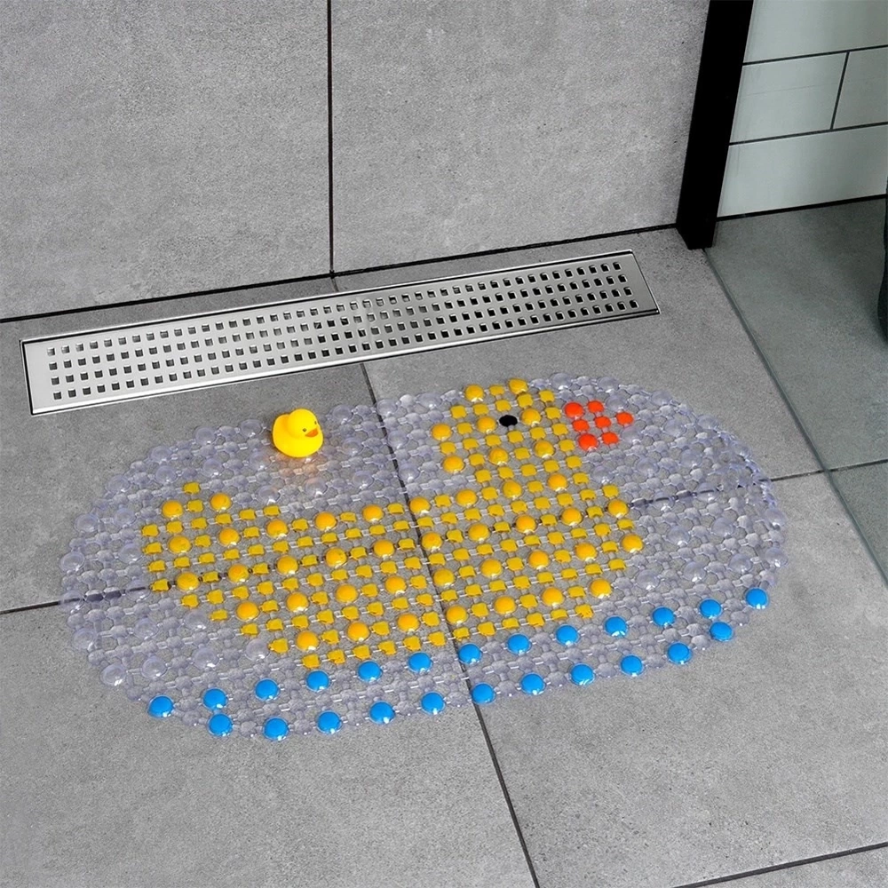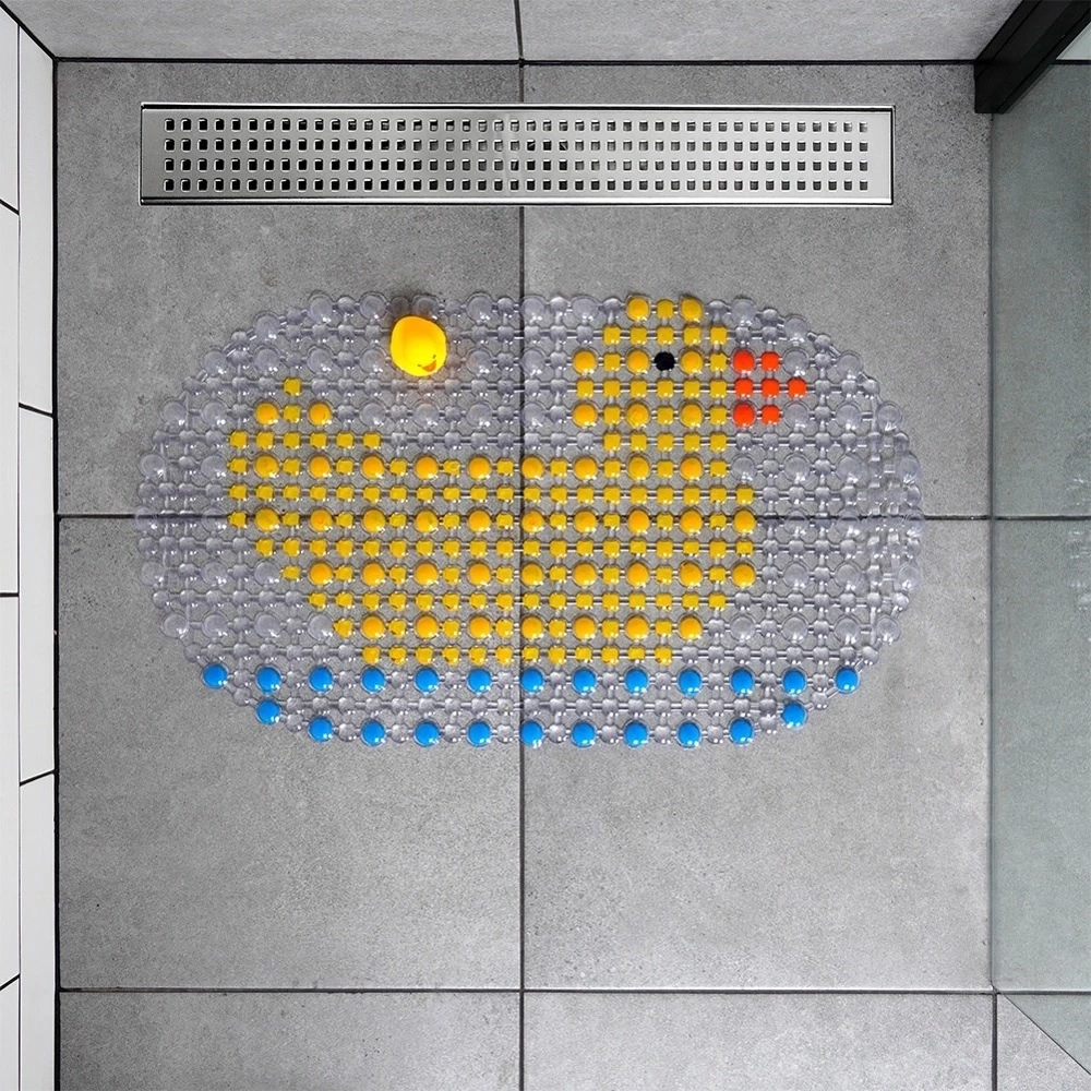 - Mata antypoślizgowa z przyssawkami pod prysznic lub do wanny ogranicza ryzyko poślizgnięcia się na mokrej nawierzchni. W zestawie z piszczącą kaczuszką.