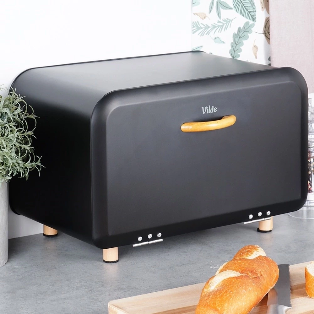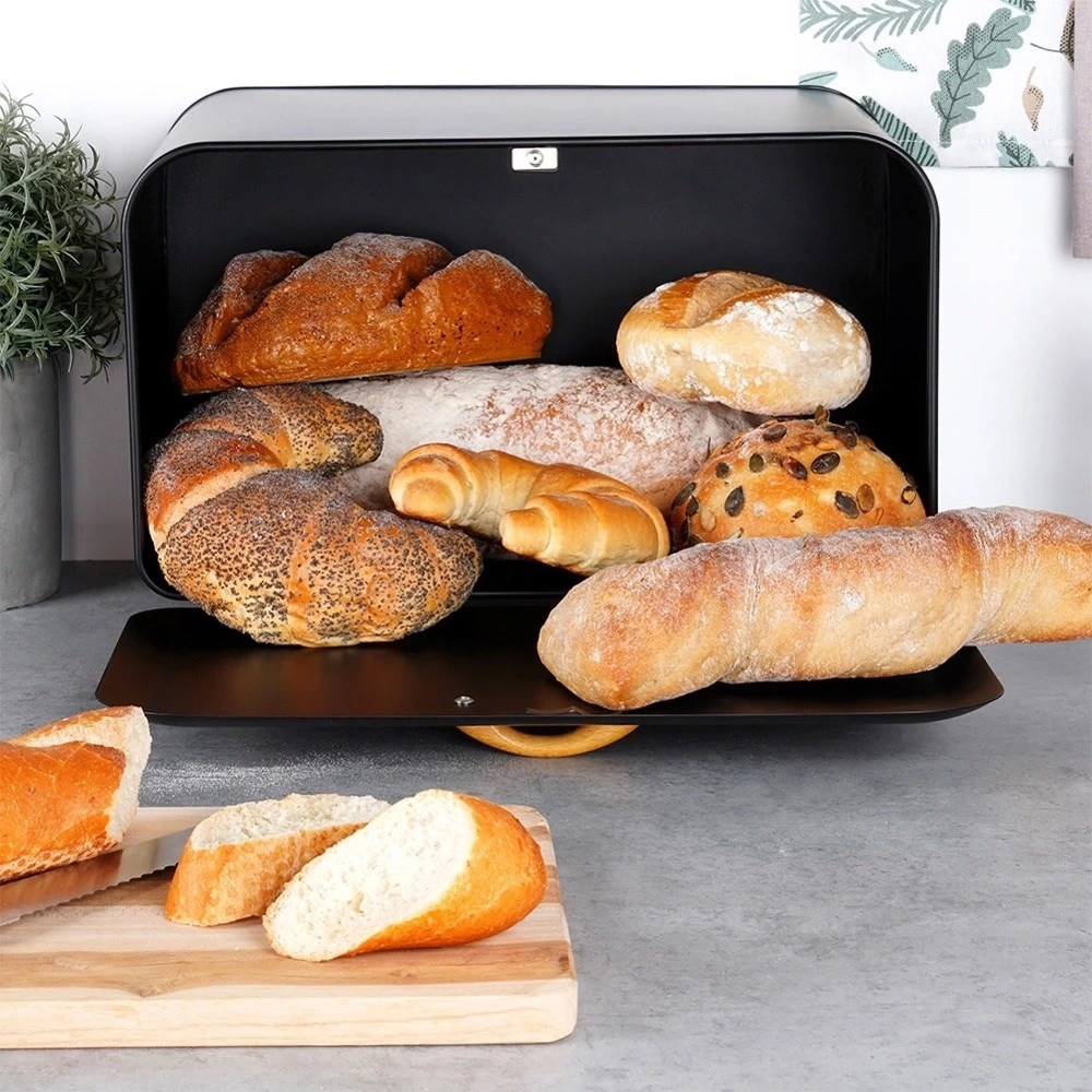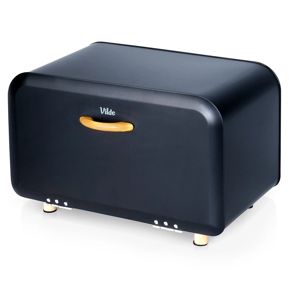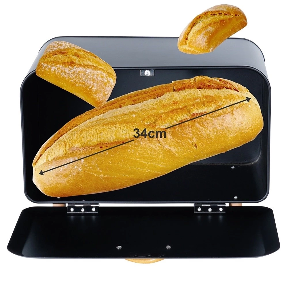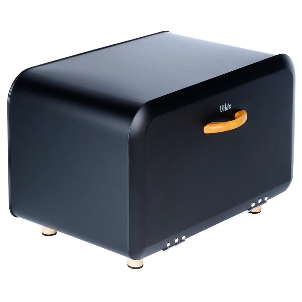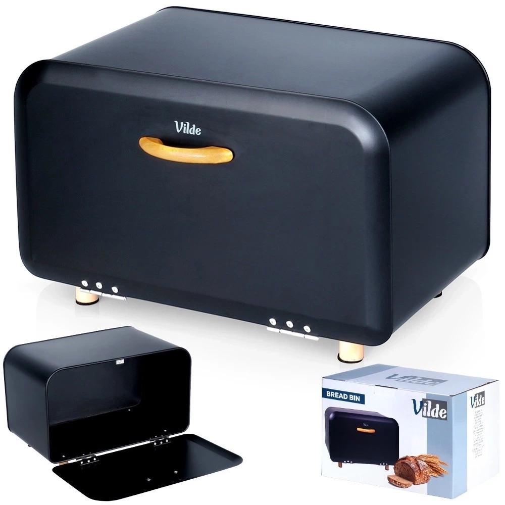 - Pojemny chlebak wykonany z metalu w kolorze czarnym. Posiada uchwyt wykonany z drewna, który zapewni wygodne otwieranie i zamykanie.