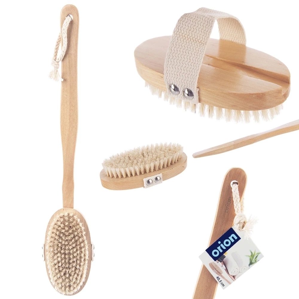 Szczotka do masażu z długim uchwytem, który można w łatwy sposób zdjąć. Wygodna w użytkowaniu, jest solidnie wykonana z naturalnych materiałów. Szczotka posiada praktyczną pętelkę do zawieszenia, co umożliwia łatwe przechowywanie w łazience i szybkie schnięcie po użyciu. Używanie szczotki pozwoli odpowiednio zadbać o skórę Oryginalny produkt czeskiej marki Orion. Wyprodukowano zgodnie z europejskimi standardami.