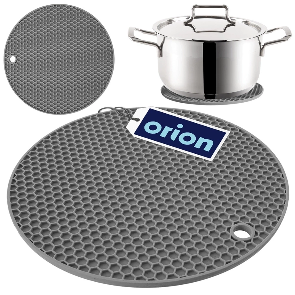 Silikonowa podkładka na stół pod gorące naczynia. Podkładka jest stabilna i dobrze się prezentuje. Zdecydowanie ułatwi pracę w kuchni i ochroni blat przed zniszczeniem. Niezwykle przydatna w domu do odstawiania garnków po zakończonym gotowaniu lub gorących naczyń wyciągniętych bezpośrednio z piekarnika. Oryginalny produkt czeskiej marki Orion. Wyprodukowano zgodnie z europejskimi standardami.