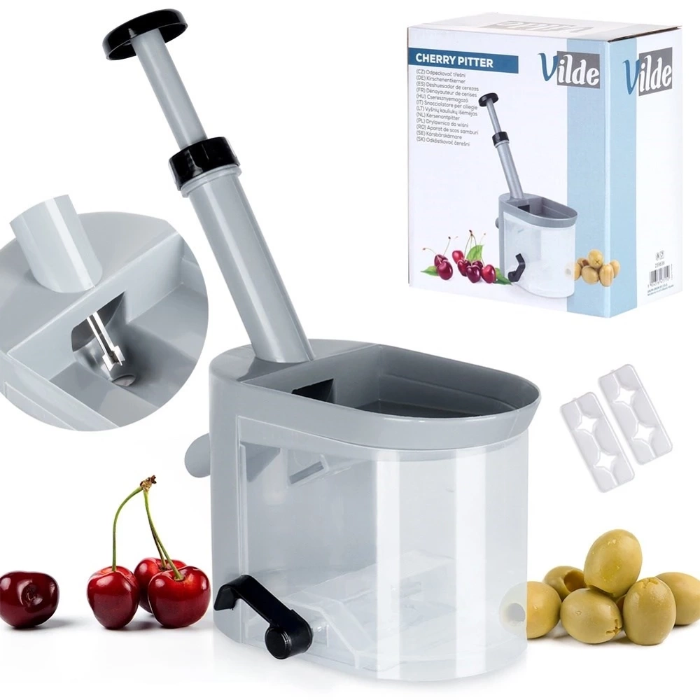 Praktyczna drylownica z łatwością pomoże usunąć pestki z wiśni, czereśni i oliwek. Zajmuje mało miejsca i jest wygodna w użytkowaniu. Przydatna przy przygotowywaniu owocowego ciasta, ciastek, konfitur. Łatwa w utrzymaniu w czystości. Oryginalny produkt marki Vilde. Wyprodukowano zgodnie z europejskimi standardami.
