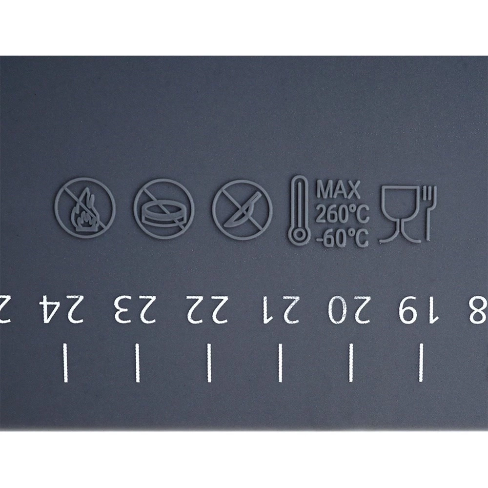 - Odporna na temperaturę, nadaje się do piekarnika, mikrofalówki i zmywarki - Stolnica jest odporna na niską oraz wysoką temperaturę od -40°C do +260°C. Możemy używać jej również jako maty do pieczenia w piekarniku. Nadaje się do mycia w zmywarce do naczyń, a także można używać jej w zamrażalniku oraz mikrofalówce.