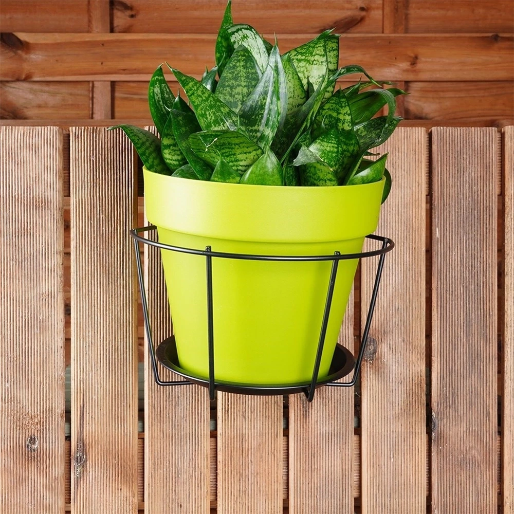 Metalowy uchwyt do zawieszenia doniczki na balkonie lub tarasie. Łatwy montaż, wystarczy zawiesić go na balustradzie. Dzięki niemu w efektowny sposób wyeksponujemy rośliny w doniczkach, odpowiednio wykorzystując przestrzeń. Oryginalny produkt marki Vilde. Wyprodukowano zgodnie z europejskimi standardami.