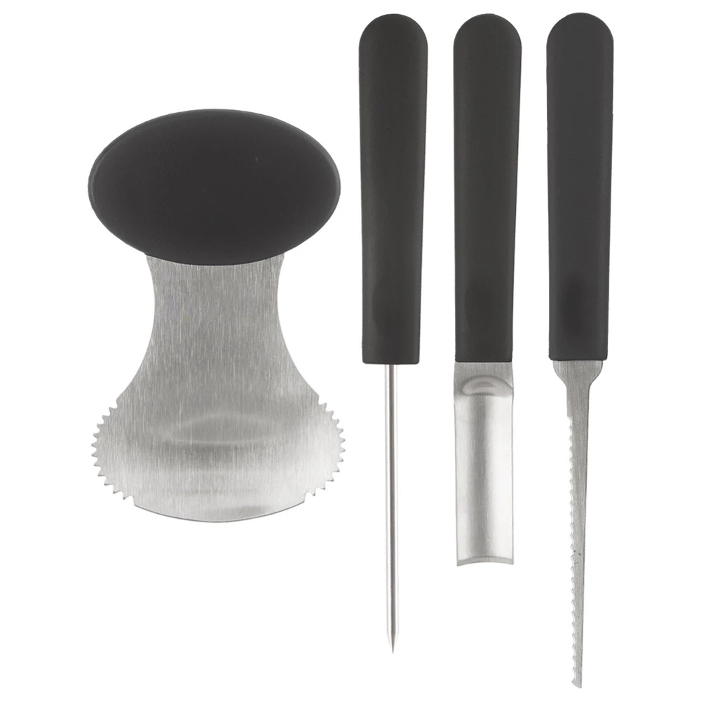 - Zestaw czterech drylownic do rzeźbienia oraz wydrążania środków z owoców i warzyw. Przydatne do wydrążania dyni oraz wycinanie skomplikowanych wzorów.