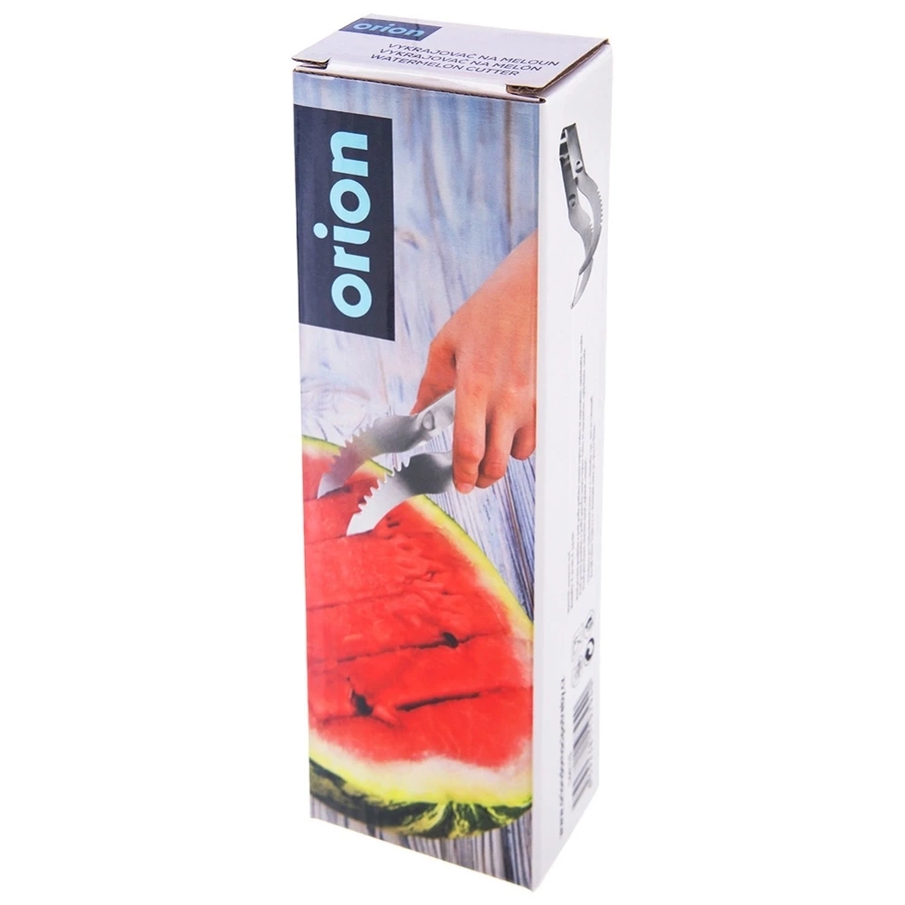 Krajalnica do arbuza to niezastąpione narzędzie, które umożliwia szybkie i precyzyjne krojenie owocu na równe kawałki. Nóż jest wygięty w łuk, co pozwala na swobodne wycięcie miąższu ze środka owocu. Krajalnica jest bardzo prosta i wygodna w użyciu. Oryginalny produkt czeskiej marki Orion. Wyprodukowana zgodnie z europejskimi standardami.