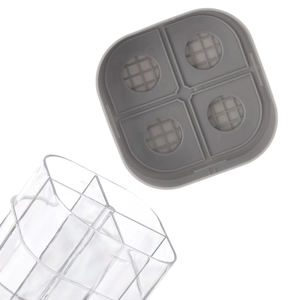 - Wygodne cztery dozowniki - Każda przegroda jest wyposażona w osobny dozownik z otworem w kratkę, co ułatwia kontrolowanie ilości wsypywanych przypraw. Dzięki temu można łatwo dozować odpowiednią ilość przypraw bez ryzyka przesypania.