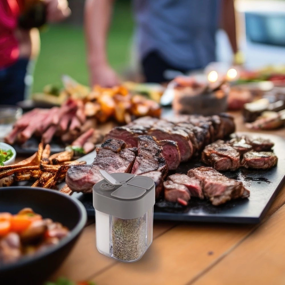 - Kompaktowy i efektowny - Pojemnik niezwykle efektownie prezentuje się na stole. Przydatny podczas wyjazdów pod namiot lub na kemping, w jednym miejscu możemy przechowywać cztery różne przyprawy. Ułatwia to przechowywanie i transportowanie różnych przypraw.