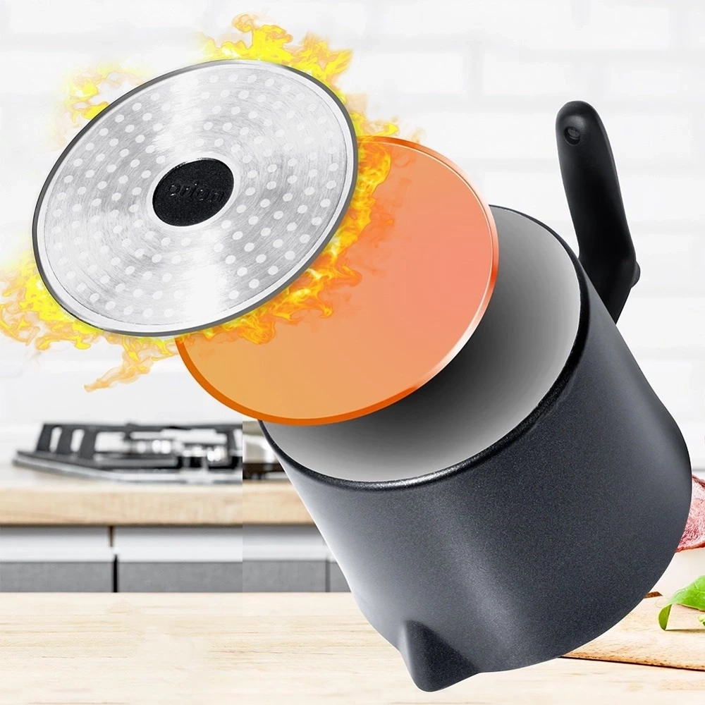 Garnek do podgrzewania mleka z wygodnym uchwytem oraz wylewką. Niezwykle solidnie wykonany z najwyższej jakości materiałów. Łatwy w czyszczeniu. Dobrze kumuluje i rozprowadza ciepło. Dzięki uniwersalnemu zastosowaniu sprawdzi się również do przygotowania sosów, budyniów lub idealnego roztopienia czekolady do deserów. Przydatny w każdym domu. Oryginalny produkt czeskiej marki Orion. Wyprodukowano zgodnie z europejskimi standardami.