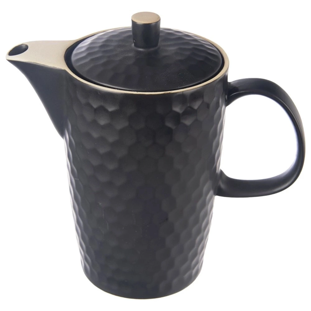 - Wykonany z kamionki - Wykonany z wysokiej jakości kamionki w kolorze czarnym. Zewnętrzny dekor dzbanka przypomina plaster miodu. Odpowiednio użytkowany posłuży długie lata.