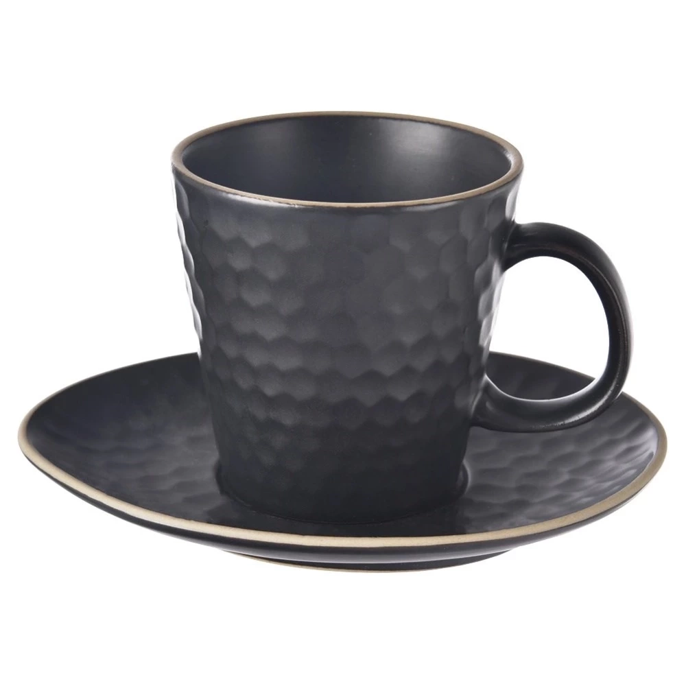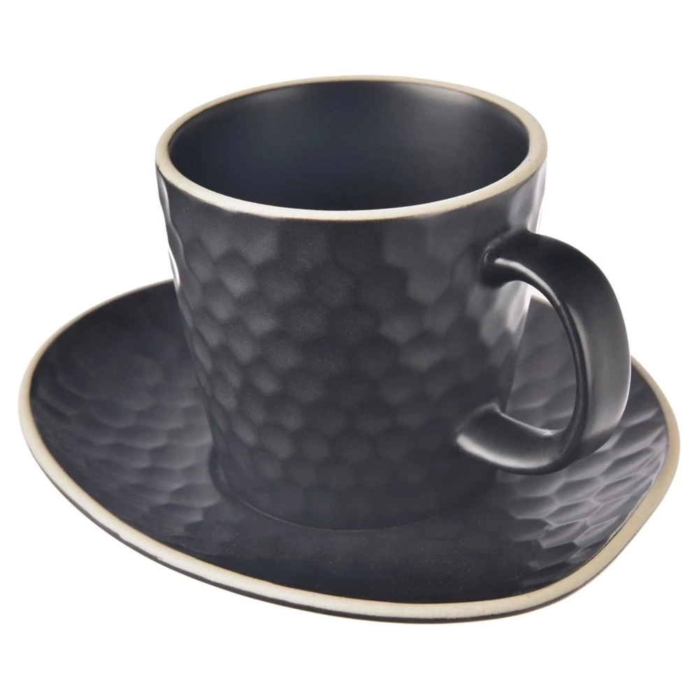 - Wykonana z kamionki - Wykonana z wysokiej jakości kamionki w kolorze czarnym. Zewnętrzny dekor filiżanki i talerzyka przypomina plaster miodu. Odpowiednio użytkowana posłuży długie lata.