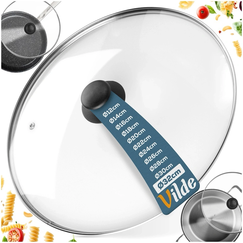 Uniwersalna pokrywka szklana, idealne pasująca do naczyń, patelni i garnków w tym rozmiarze. Wykonana z wytrzymałych i solidnych materiałów. Będzie świetnym uzupełnieniem garnka lub patelni, które pokrywki w zestawie nie posiadały. Klasyczny kształt zapewni wygodne użytkowanie. Pokrywka jest niezbędna w każdej kuchni. Dzięki niej potrawy szybciej się gotują, a także zabezpiecza przed pryskaniem wody i tłuszczu. Dodatkowo, pokrywka sprawia, że przygotowane potrawy dłużej utrzymują temperaturę. Oryginalny produkt marki Vilde. Wyprodukowano zgodnie z europejskimi standardami.