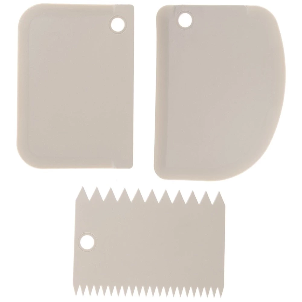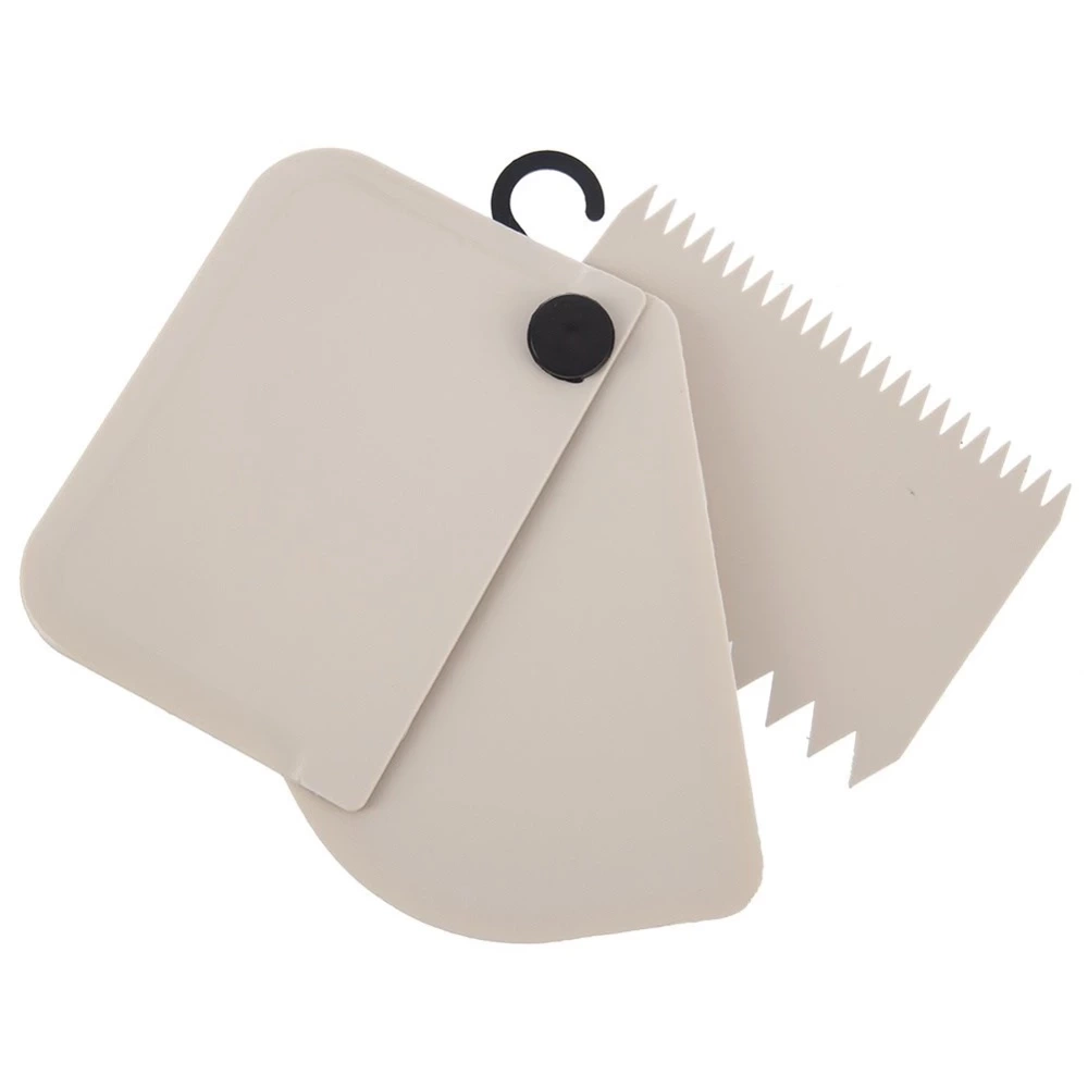 - Zestaw trzech szpatułek cukierniczych: dwie gładkie, jedna ząbkowana. Przydatne podczas dekoracji ciasta, tortu, a także wygodnego rozcierania kremu.