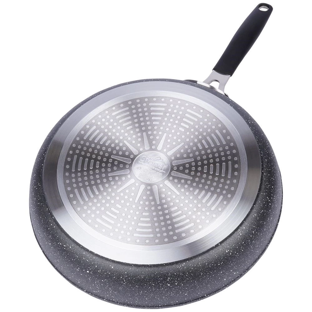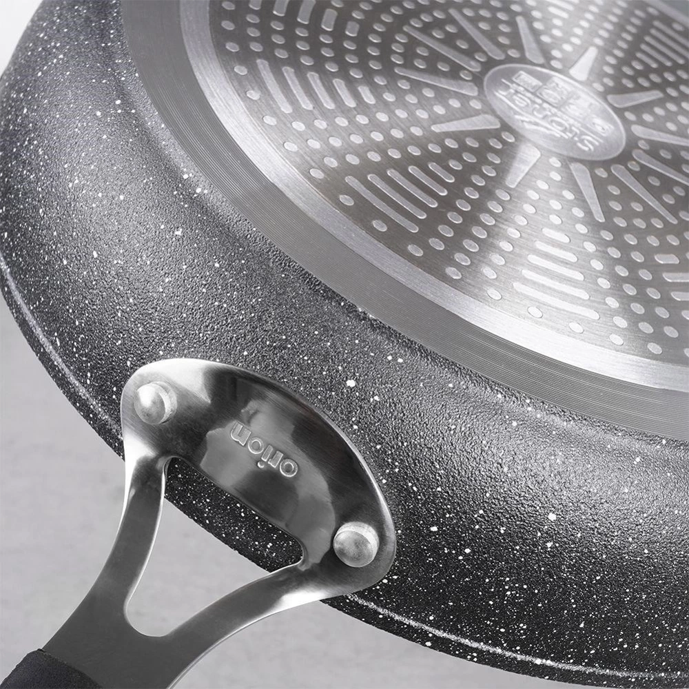 Patelnia granitowa wykonana z najwyższej jakości materiałów, nie zawiera żadnych toksycznych związków - PFOA, PTFE. Można stosować na wszystkich typach kuchenek wraz z indykcją. Patelnia zaskoczy Cię swoimi unikalnymi właściwościami. Jej chropowata powierzchnia jest idealna do steków i wielu innych przysmaków. Dzięki temu olej jest lepiej rozprowadzony pod potrawami, składniki są równomiernie przypieczone, nie palą się. Oryginalny produkt czeskiej marki Orion. Wyprodukowano zgodnie z europejskimi standardami.