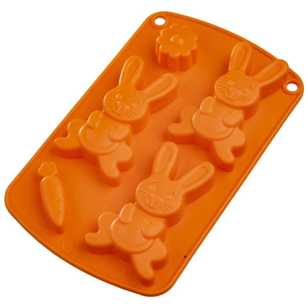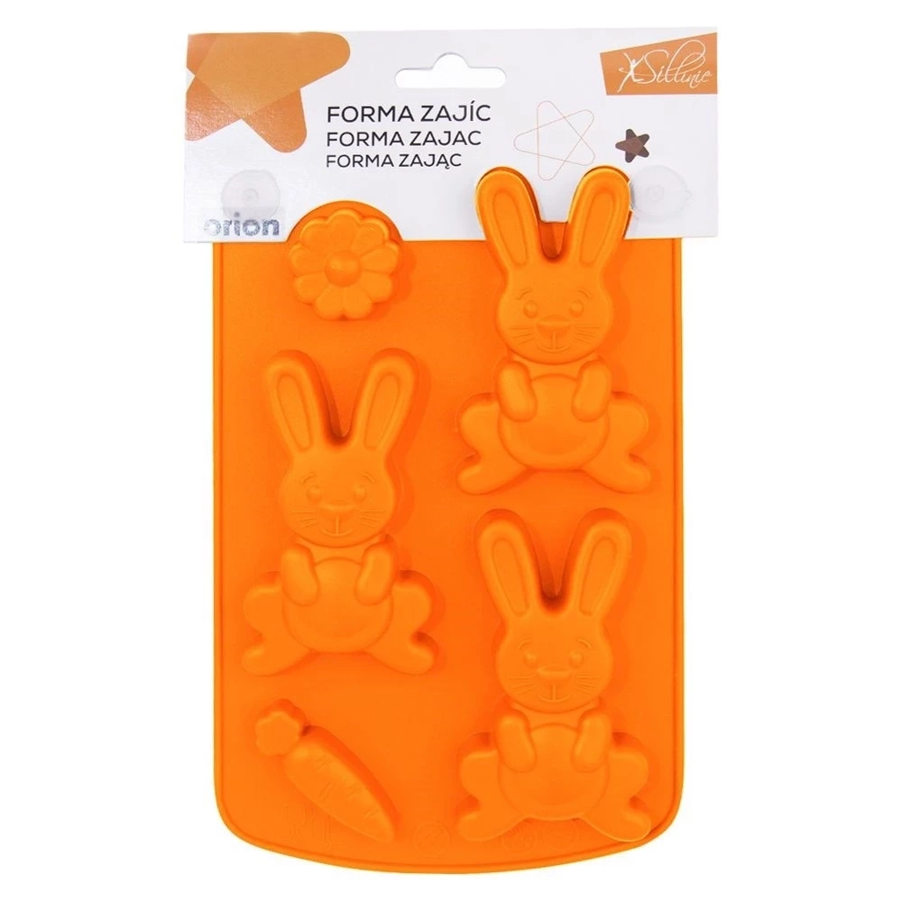 Silikonowa foremka pozwalająca przygotować 5 pralin. Idealnie sprawdzi się w okresie wielkanocnym, gdyż stworzymy w niej słodkości w kształcie wielkanocnego zająca. Możemy przygotować w niej praliny, czekoladki a także ciastka. Foremka nie wchłania zapachów i smaków. Ciasto nie przywiera, idealnie się wyciąga. Do wypieku nie używa się żadnego tłuszczu czy mąki. Forma silikonowa jest lekka, elastyczna, zajmuje mało miejsca i jest odporna na zmiany temperatury. Bardzo dobrze przewodzi ciepło. Oryginalny produkt czeskiej marki Orion. Wyprodukowano zgodnie z europejskimi standardami.