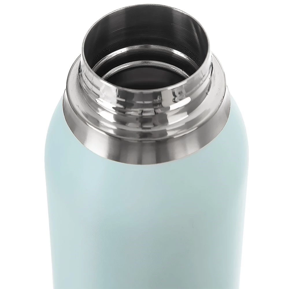 - STALOWA - Wykonana z wysokiej jakości stali nierdzewnej wewnątrz i na zewnątrz. Na zewnątrz malowana proszkowo na kolor błękitny z delikatną grafiką. Zewnętrzna powierzchnia jest antypoślizgowa. Korek na zewnątrz wykonany z drewna bambusowego a wewnątrz z wysokiej jakości tworzywa wraz z uszczelką.