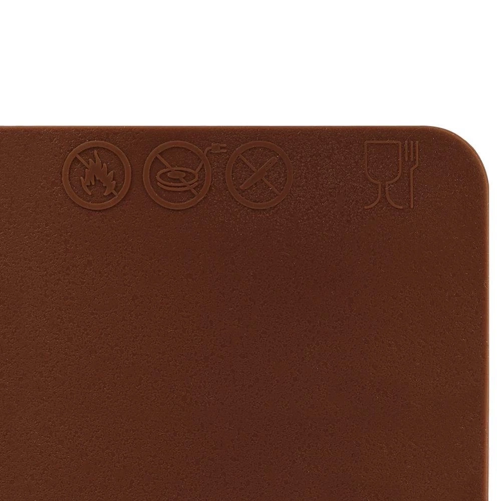 Nowoczesna, brązowa stolnica silikonowa, z jednej strony wyposażona w powłokę zapobiegającą przywieraniu, a z drugiej zapobiegającą przesuwaniu się maty, dzięki czemu świetnie trzyma się blatu. Mata jest idealna do wyrabiania ciast, ciasteczek, pizzy. Całkowicie bezpieczna dla zdrowia i neutralna dla żywności. Do wykrawania nie należy używać ostrych noży, może to uszkodzić stolnice. Oryginalny produkt czeskiej marki Orion. Wyprodukowano zgodnie z europejskimi standardami.