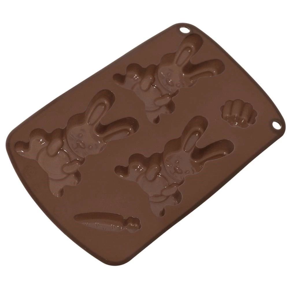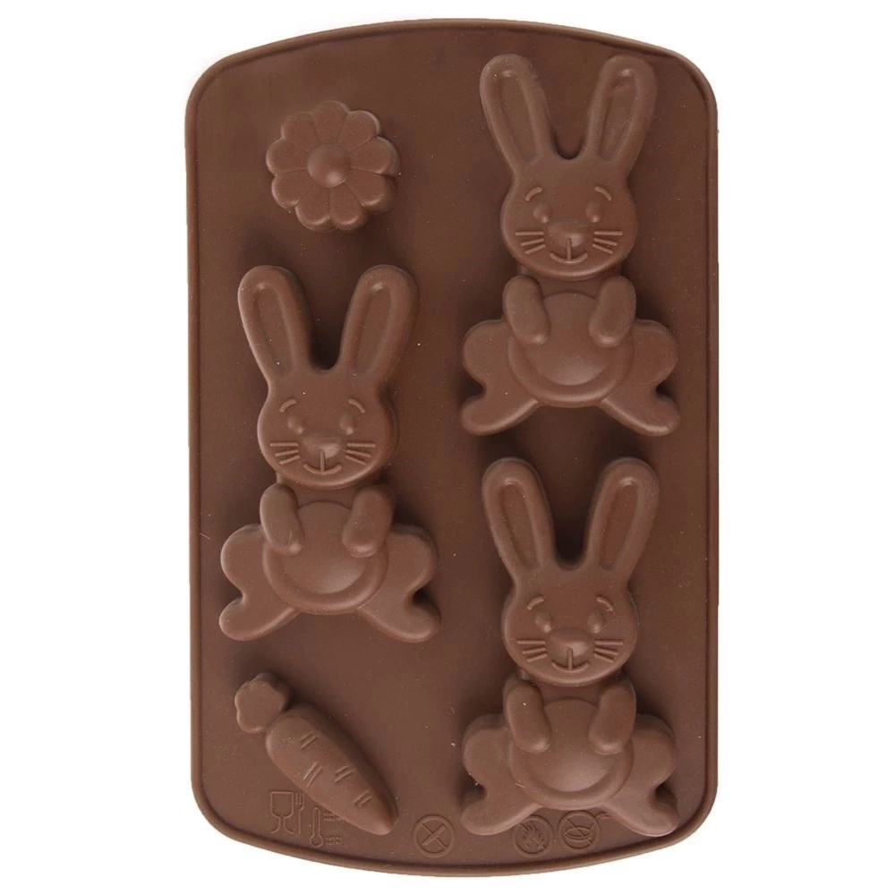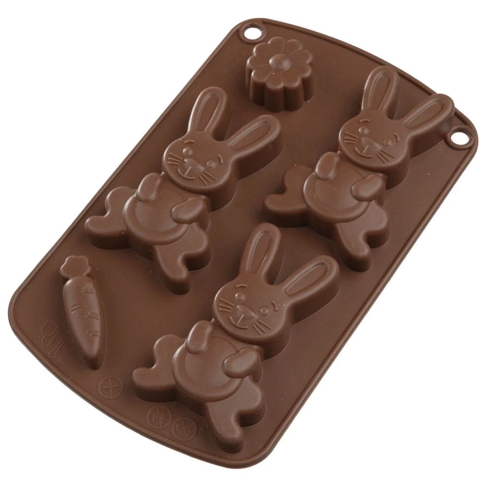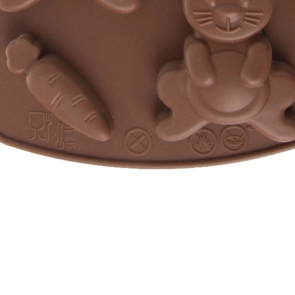 - WIELKANOCNA - Forma do przygotowywania czekoladowych pralin lub ciastek w kształcie króliczka. Forma ma wymiary 21 x 13 x 2 cm. Dzięki niej przygotujemy aż 3 sztuk wielkanocnych słodkości w kształcie zająca oraz dwie w kształcie marchewki i kwiatka.