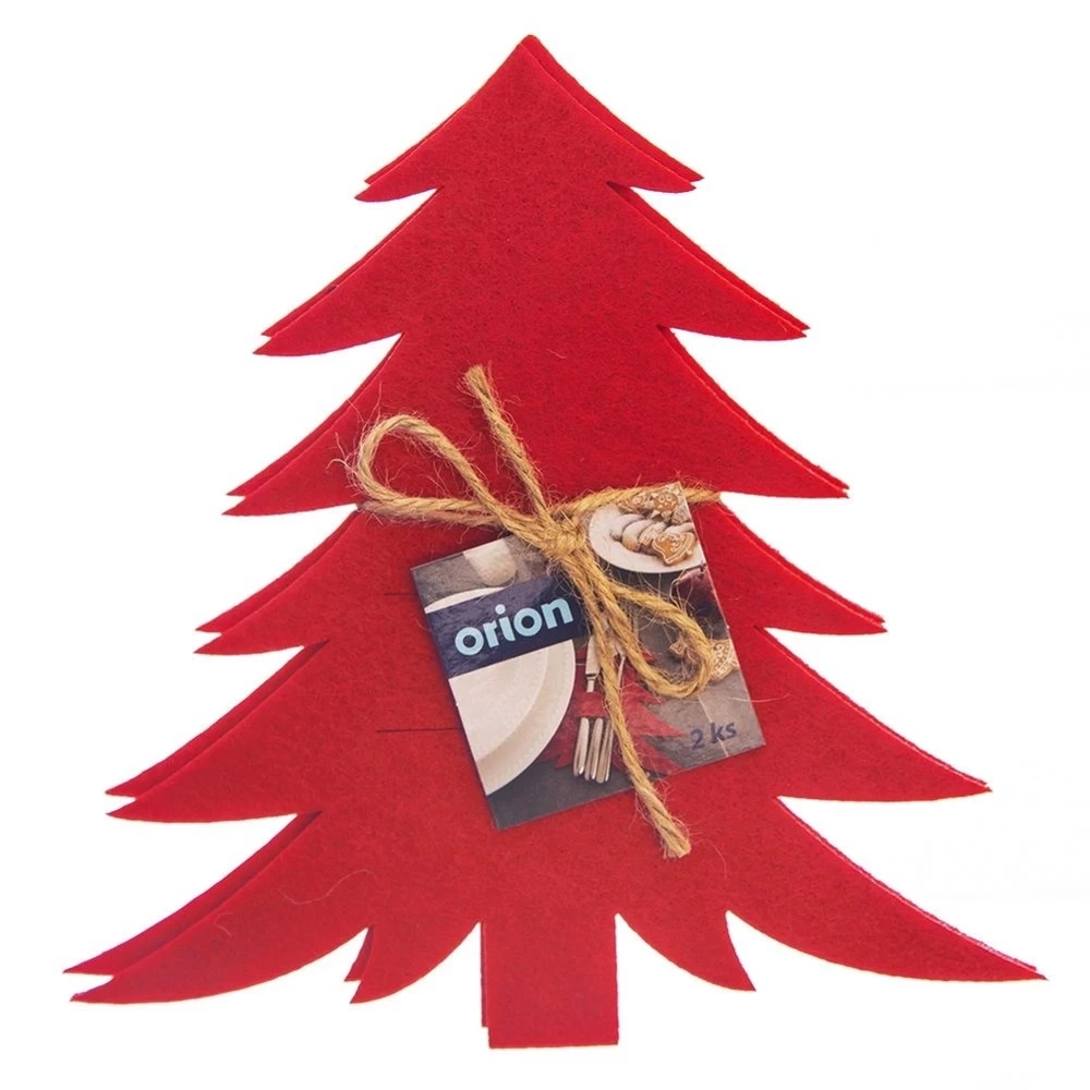 Komplet dwóch etui na sztućce w kształcie choinki. Przydatne podczas dekoracji stołu w okresie zimowym i świątecznym. Niezwykle elegancki dodatek do nakrycia stołu. Nada niepowtarzalnego, świątecznego klimatu. Idealny pomysł na świąteczny upominek. Oryginalny produkt czeskiej marki Orion. Wyprodukowano zgodnie z europejskimi standardami.