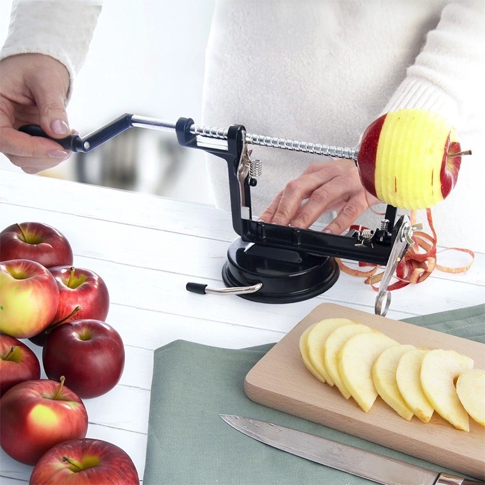 - Maszynka do krojenia i obierania ziemniaków lub jabłek. Umożliwia szybkie i efektowne krojenie ziemniaków oraz innych warzyw w kształt spirali, a także obiera ich skórkę.