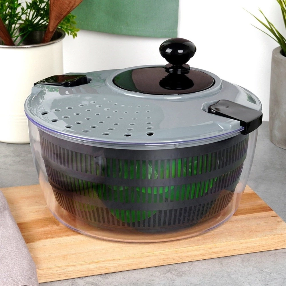 - Uniwersalne zastosowanie - Sprawdzi się także do osuszania innych warzyw liściastych, jak np. szpinak, rukola czy jarmuż. Miska może służyć również do serwowania potraw np. sałatek, a wyjmowany wkład w formie koszyczka posłuży za durszlak.