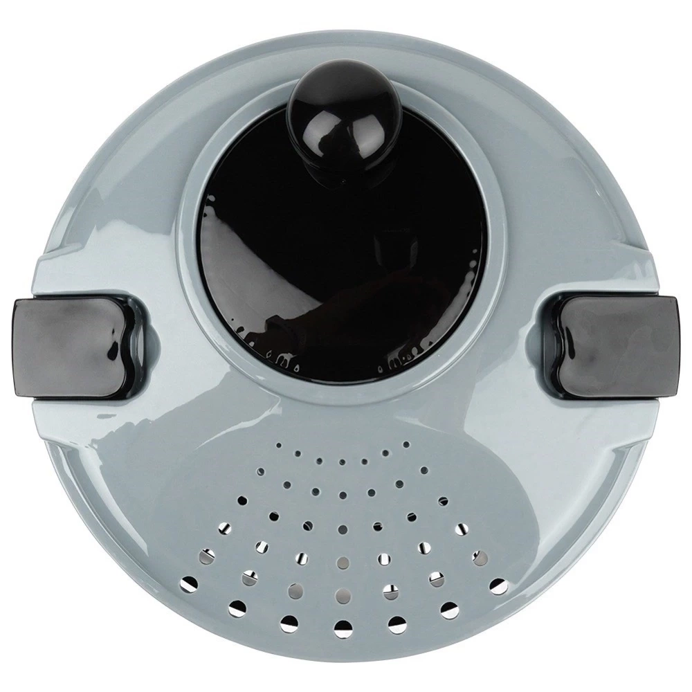 - Solidna i wytrzymała - Misa wykonana z wytrzymałego tworzywa w przezroczystym kolorze. Koszyk w kolorze czarnym, a pokrywka w szarym kolorze z elementami czarnymi.
