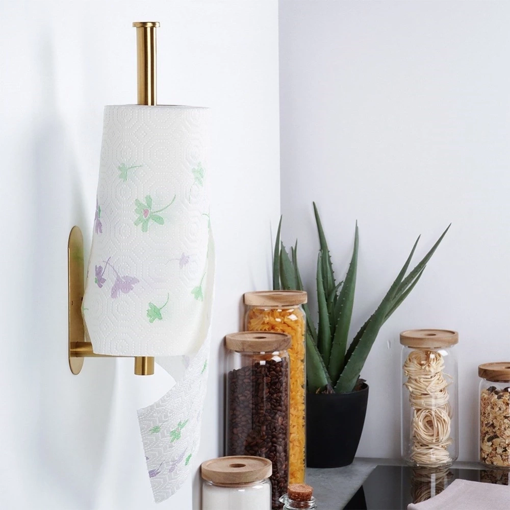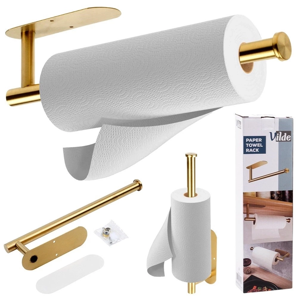 - Wieszak kuchenny na ręczniki papierowe. Wykonany ze stali nierdzewnej. Wyposażony w mocną taśmę dwustronną, która pozwoli na bezinwazyjny montaż. W zestawie również śrubki.