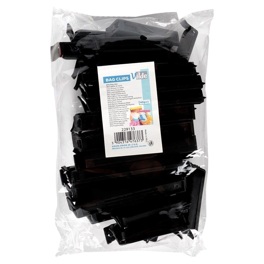 Zestaw 40 klipsów do zamykania torebek w dwóch rozmiarach. Klipsy są wykonane z wytrzymałego materiału, który zapewnia długotrwałe użytkowanie. Niezwykle przydatne w każdej kuchni. Z ich pomocą możemy szczelnie zamknąć torebki z produktami spożywczymi. Dzięki klipsom do torebek, zawartość nie rozsypuje się w lodówce, spiżarni czy torbach, co pomaga utrzymać porządek i unikać bałaganu. Oryginalny produkt marki Vilde. Wyprodukowano zgodnie z europejskimi standardami.