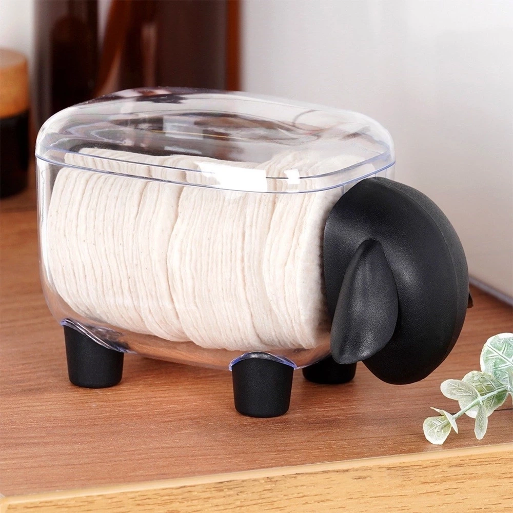 - Praktyczny pojemnik w kształcie owieczki. Idealny na patyczki, płatki kosmetyczne i inne akcesoria. Łączy funkcjonalność z estetycznym designem, dodając uroku każdej łazience.