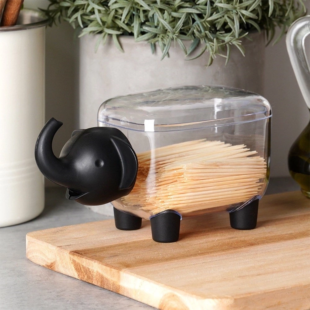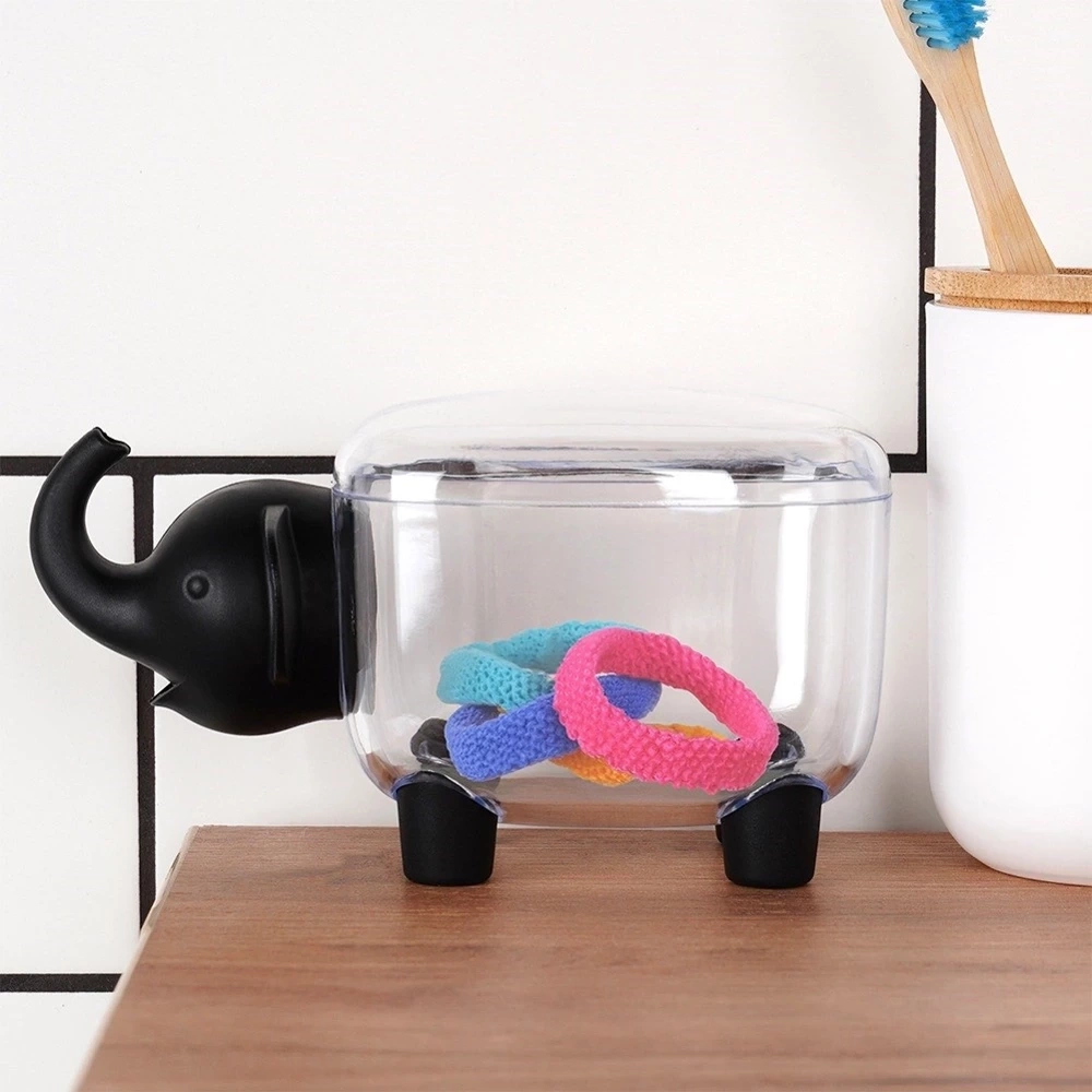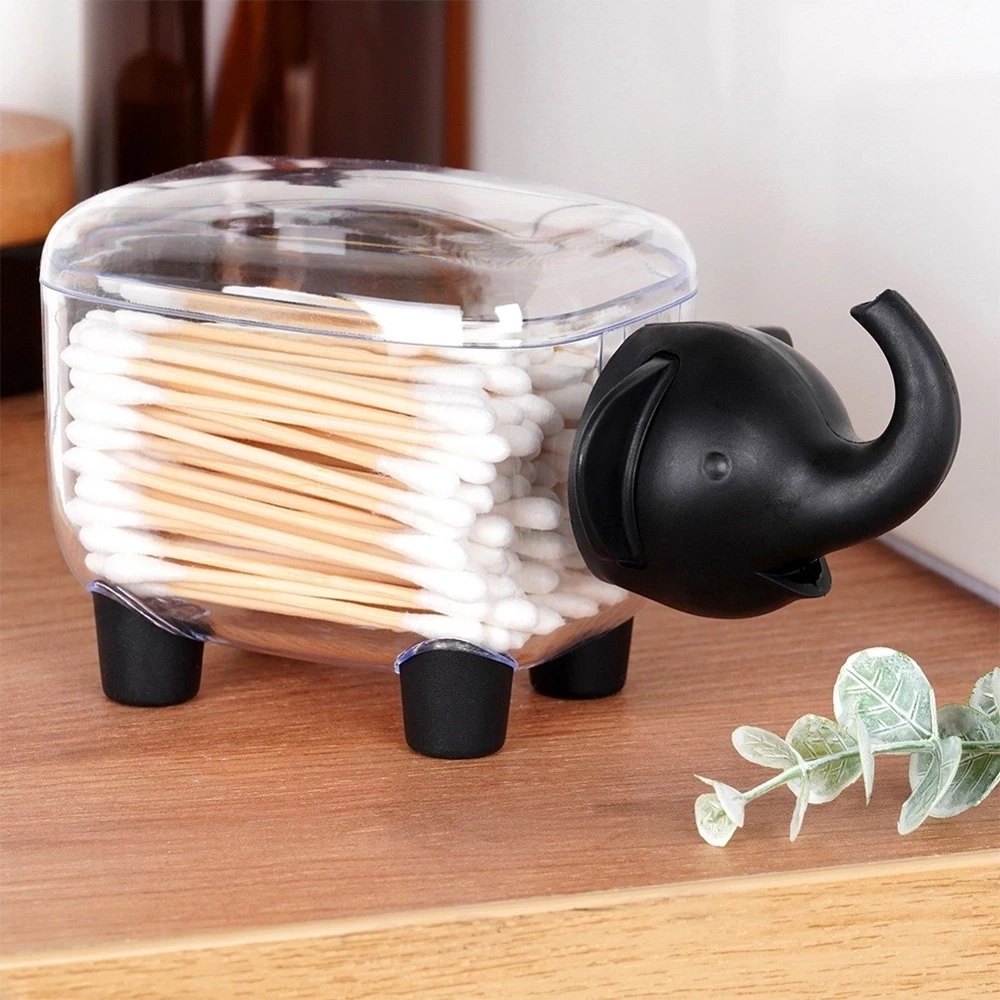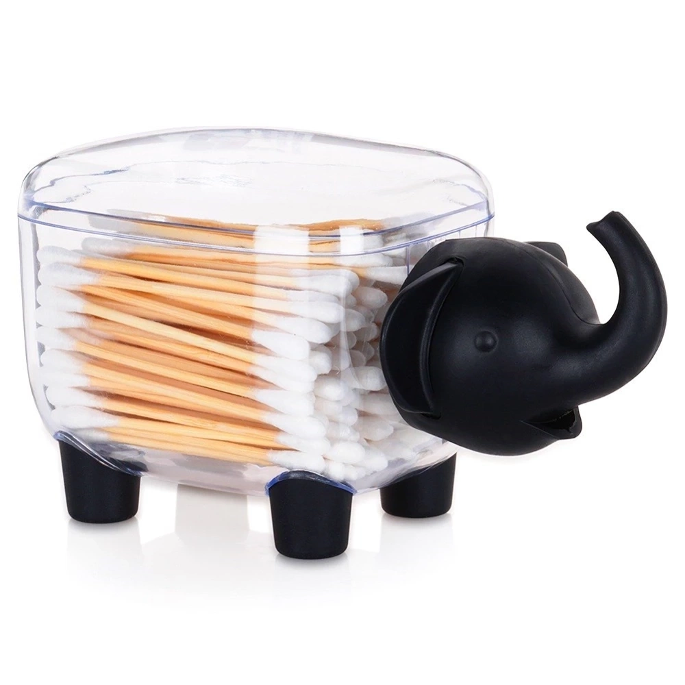 - Praktyczny pojemnik w kształcie słonika. Idealny na patyczki, płatki kosmetyczne i inne akcesoria. Łączy funkcjonalność z estetycznym designem, dodając uroku każdej łazience.