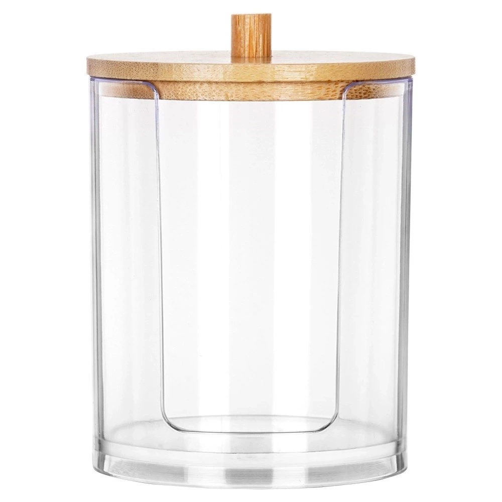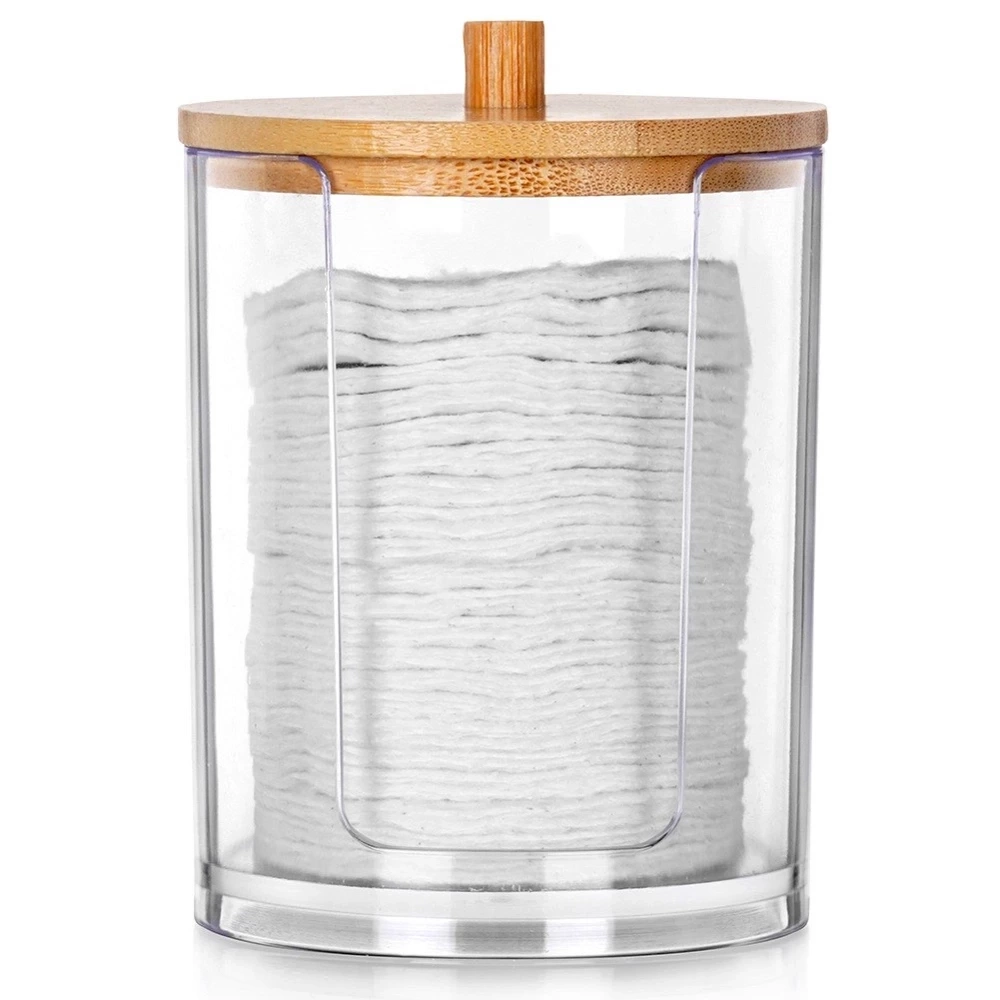 - Pojemnik na płatki kosmetyczne - Praktyczny pojemnik do przechowywania płatków kosmetycznych wykonany z przezroczystego akrylu. Pojemnik ma średnicę 7 cm i wysokość 10 cm.