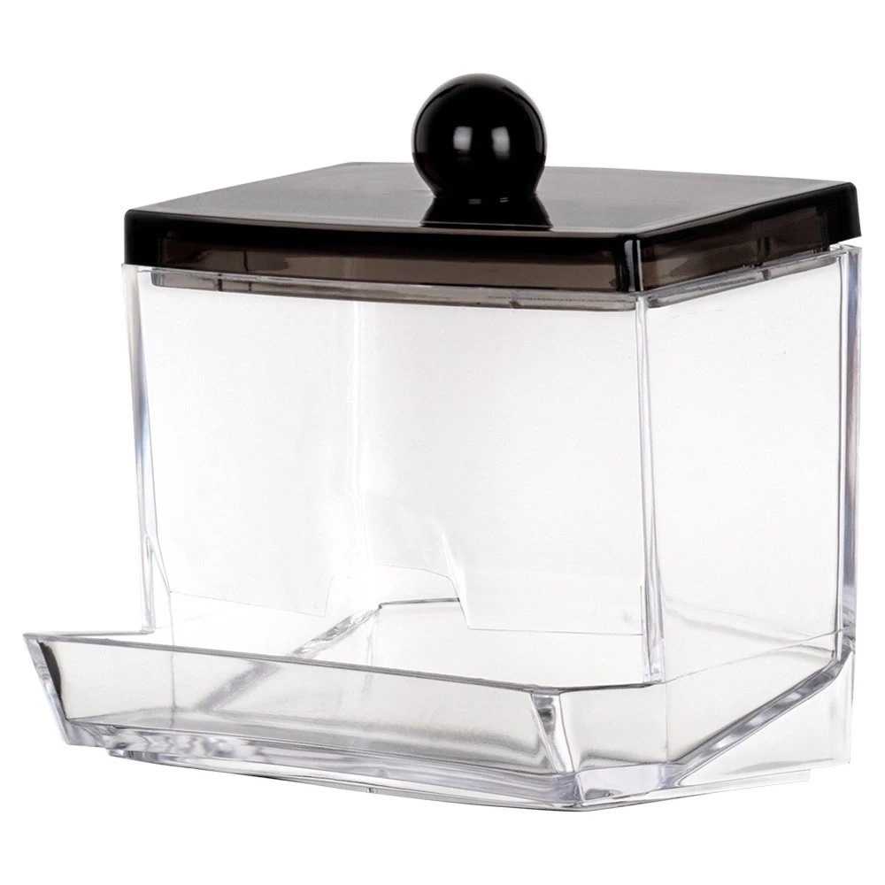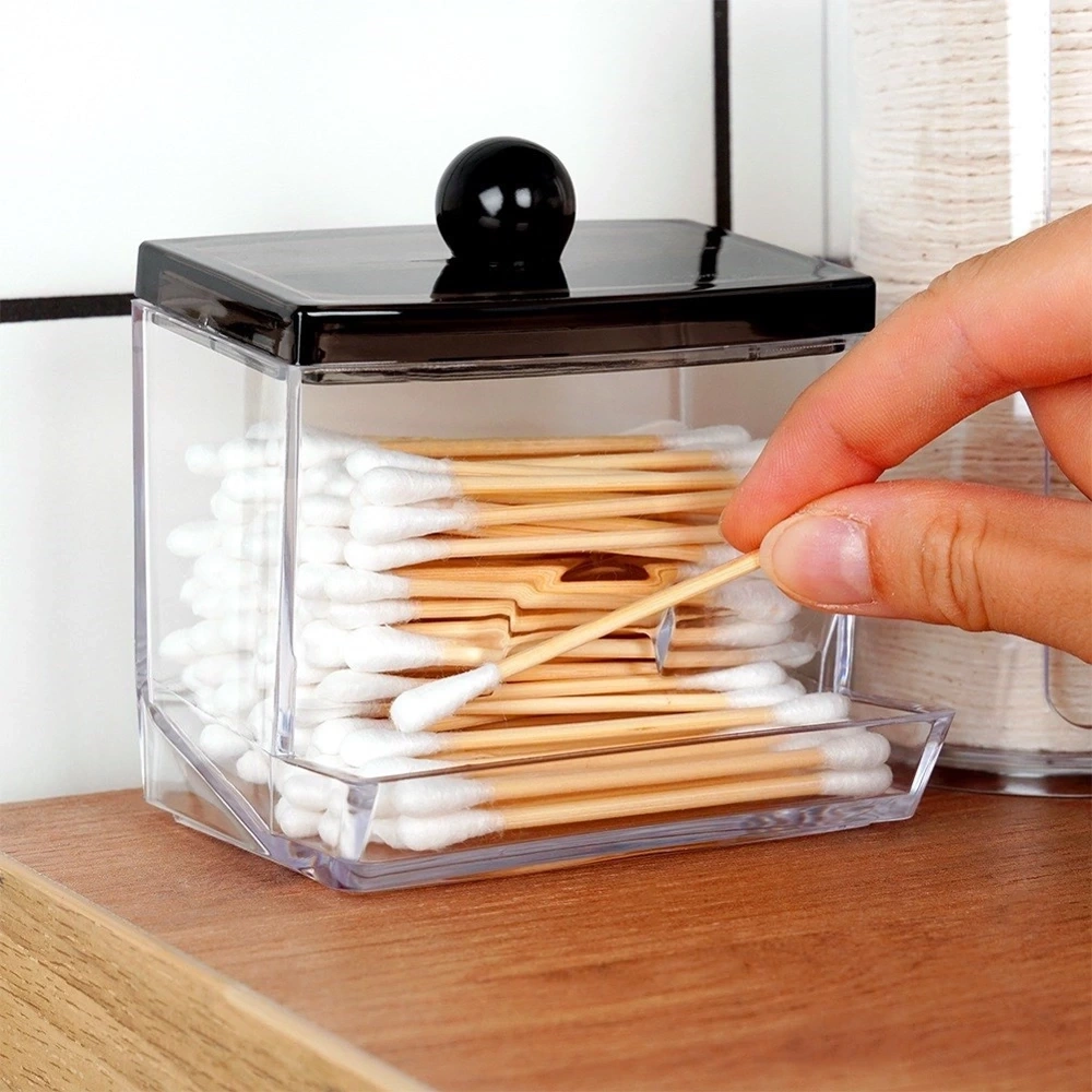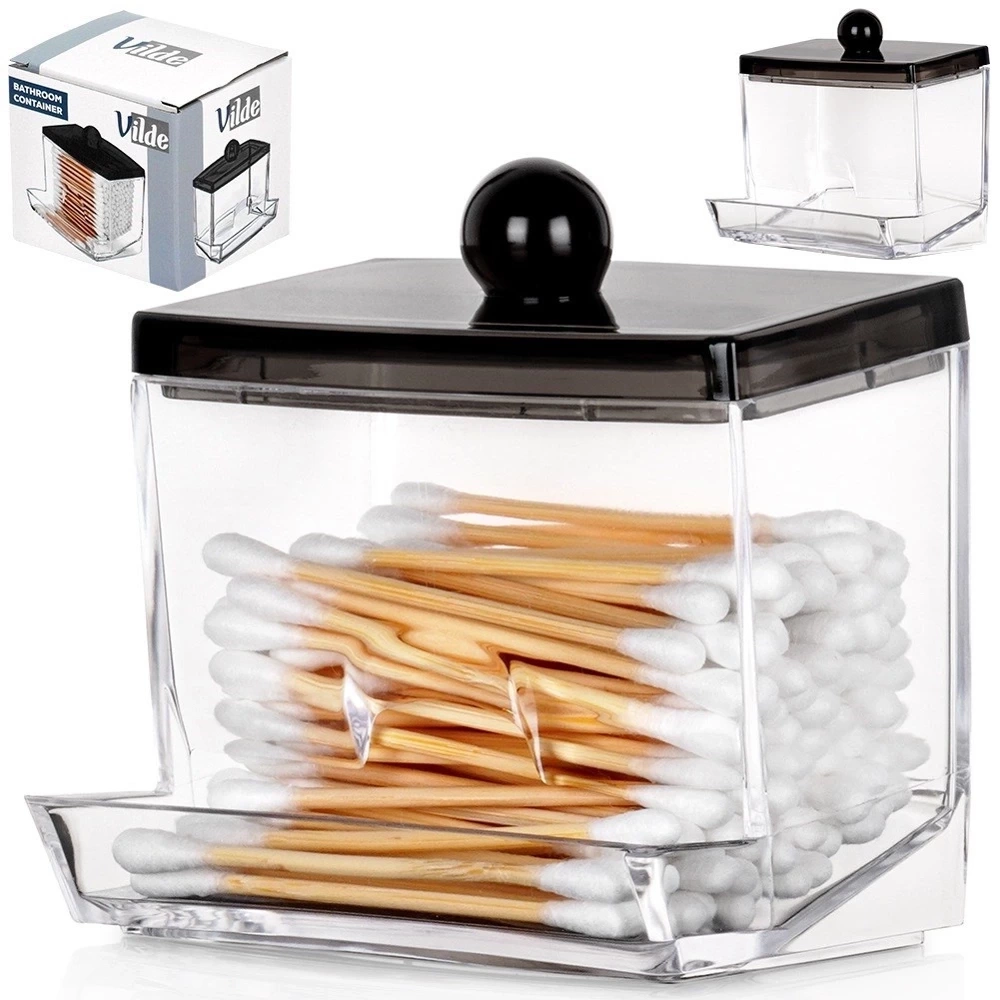 - Pojemnik na patyczki kosmetyczne - Praktyczny pojemnik do przechowywania patyczków kosmetycznych wykonany z przezroczystego akrylu. Pojemnik ma wymiary 9 x 7 x 9,5 cm.