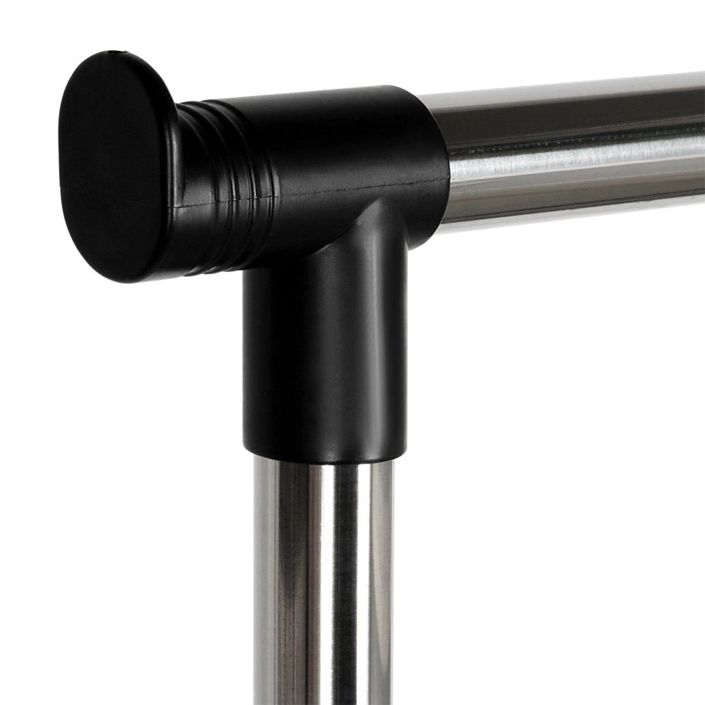 - Solidna konstrukcja - Wykonany z najwyższej jakości metalu w czarnym i srebrnym kolorze. Kółka oraz nogi wieszaka wykonane z tworzywa w kolorze czarnym. Odpowiedni materiał zapewnia mu stabilność.