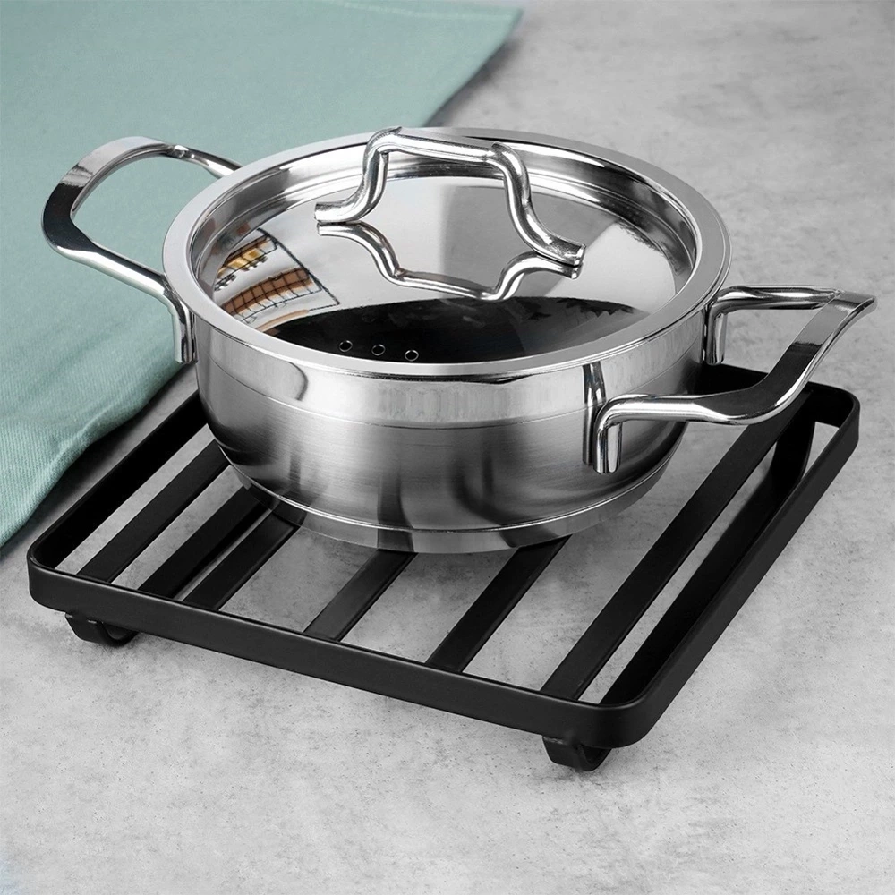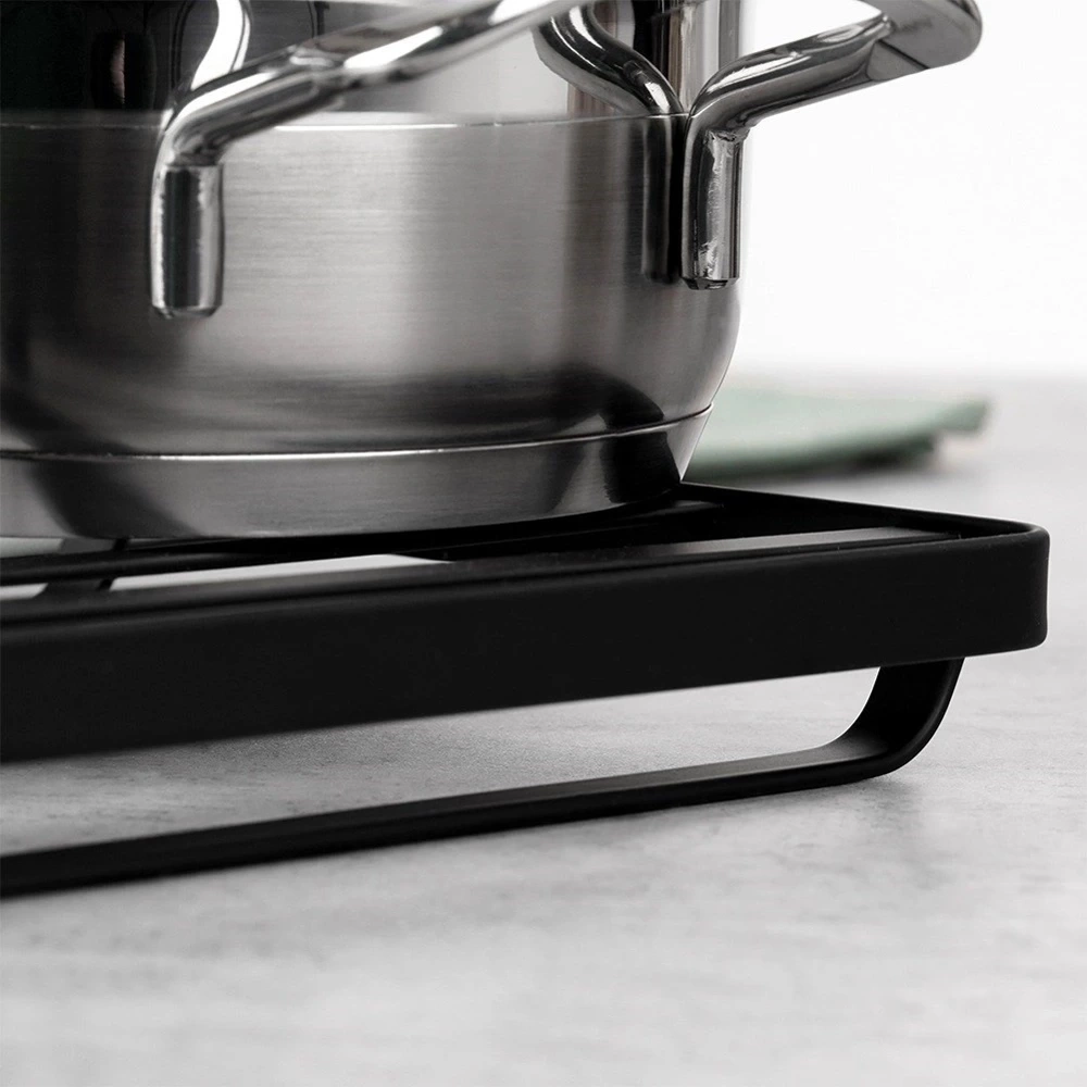 - Podkładka pod gorący garnek lub naczynia. Z jej pomocą ochronimy stół i blat kuchenny. Wykonana z metalu w kolorze czarnym. Niezbędna w każdym domu.